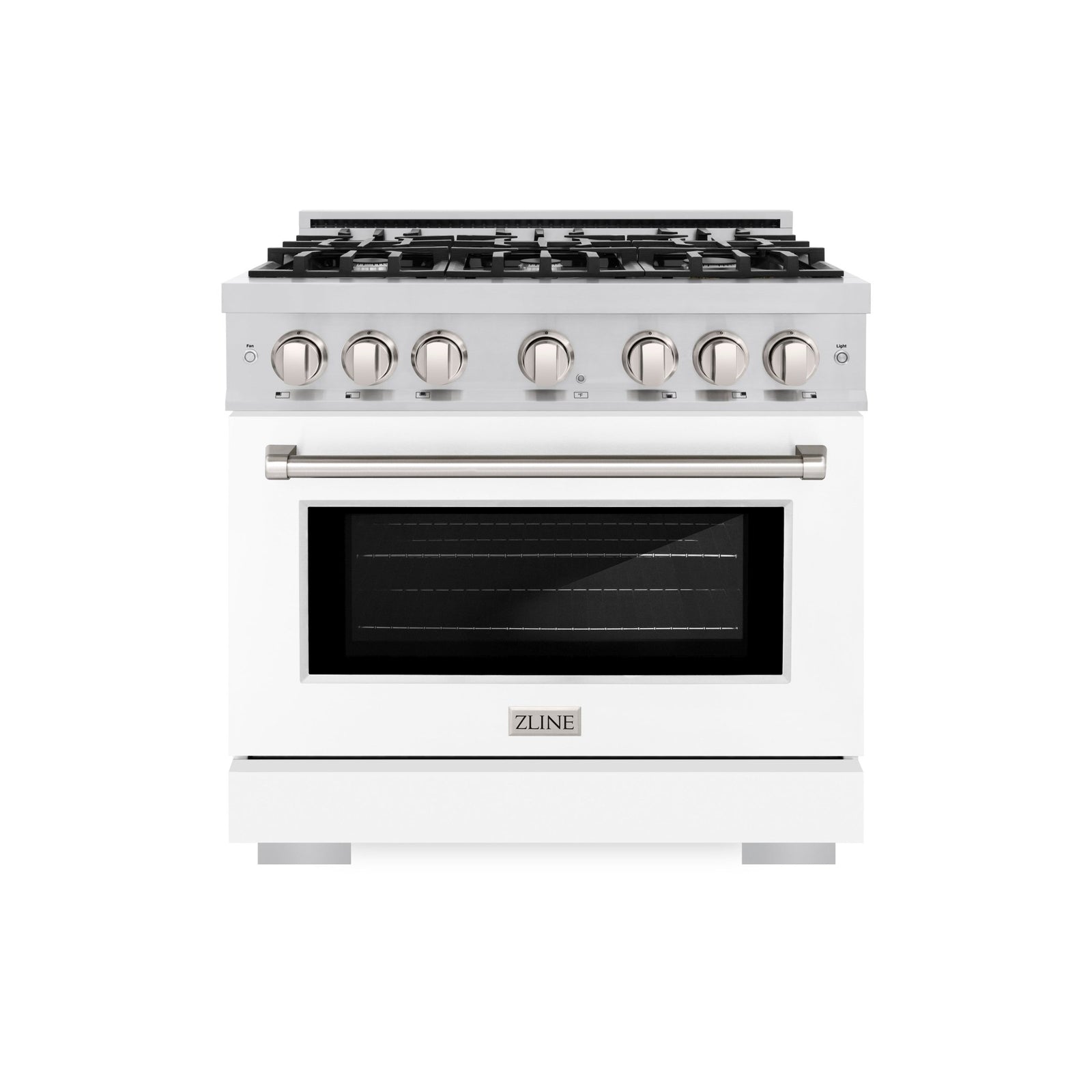 ZLINE 36 in. 5.2 cu. ft. Select Dual Fuel Range with 6 Burner Gas Cooktop and Electric Convection Oven in Stainless Steel with White Matte Door (HDR-WM-36)