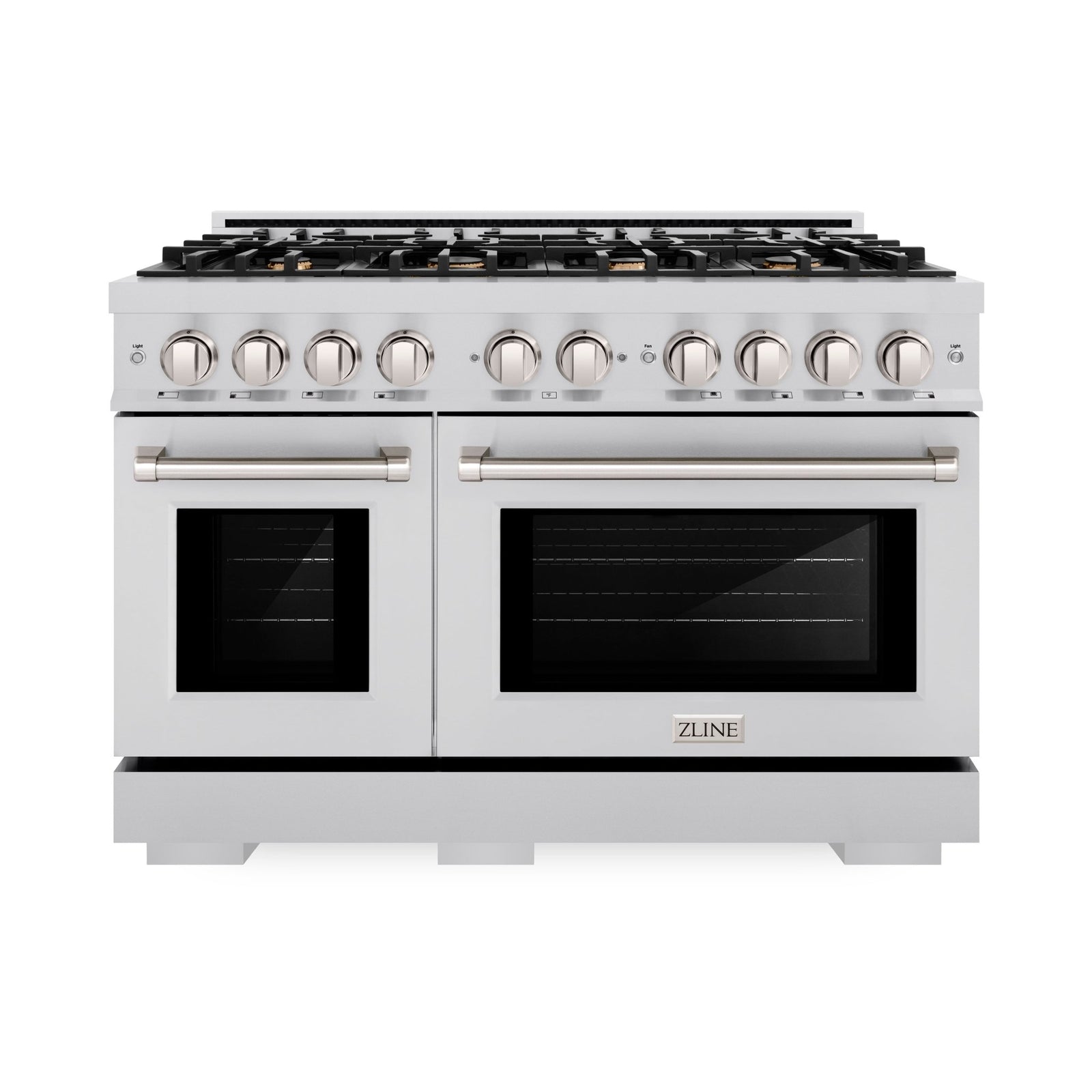 ZLINE 48 in. 6.7 cu. ft. Select Double Oven Gas Range in Stainless Steel with 8 Brass Burners (HGR-BR-48)