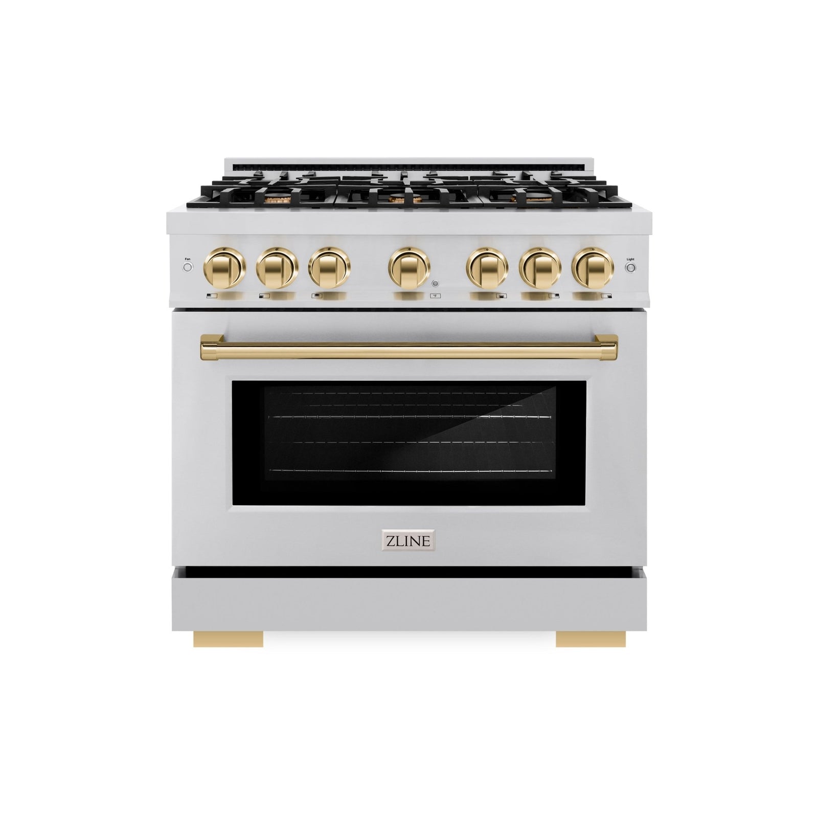 ZLINE Autograph Edition 36 in. 5.2 cu. ft. Select Dual Fuel Range with 6 Burner Gas Cooktop and Electric Convection Oven in Stainless Steel with Polished Gold Accents (HDRZ-36-G)