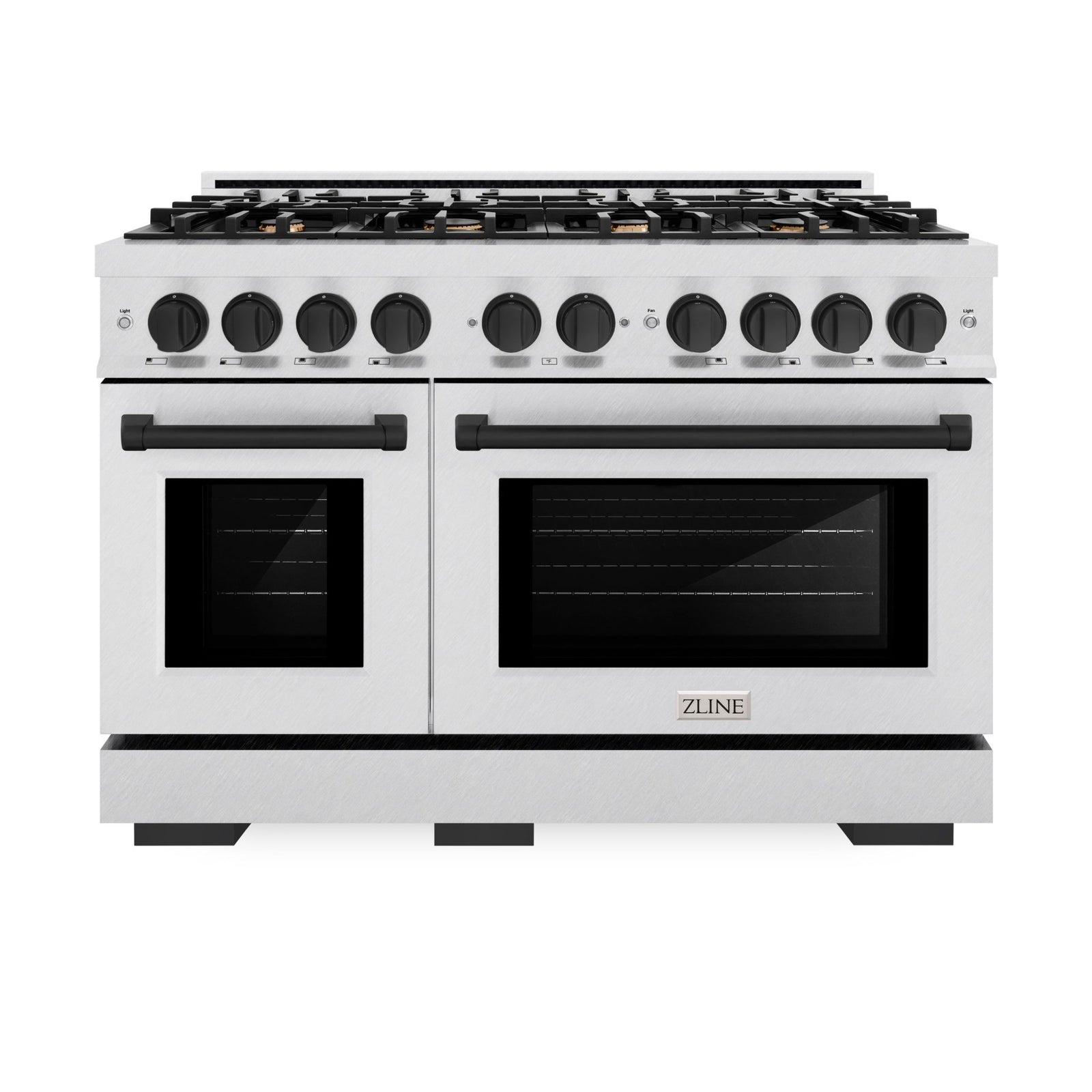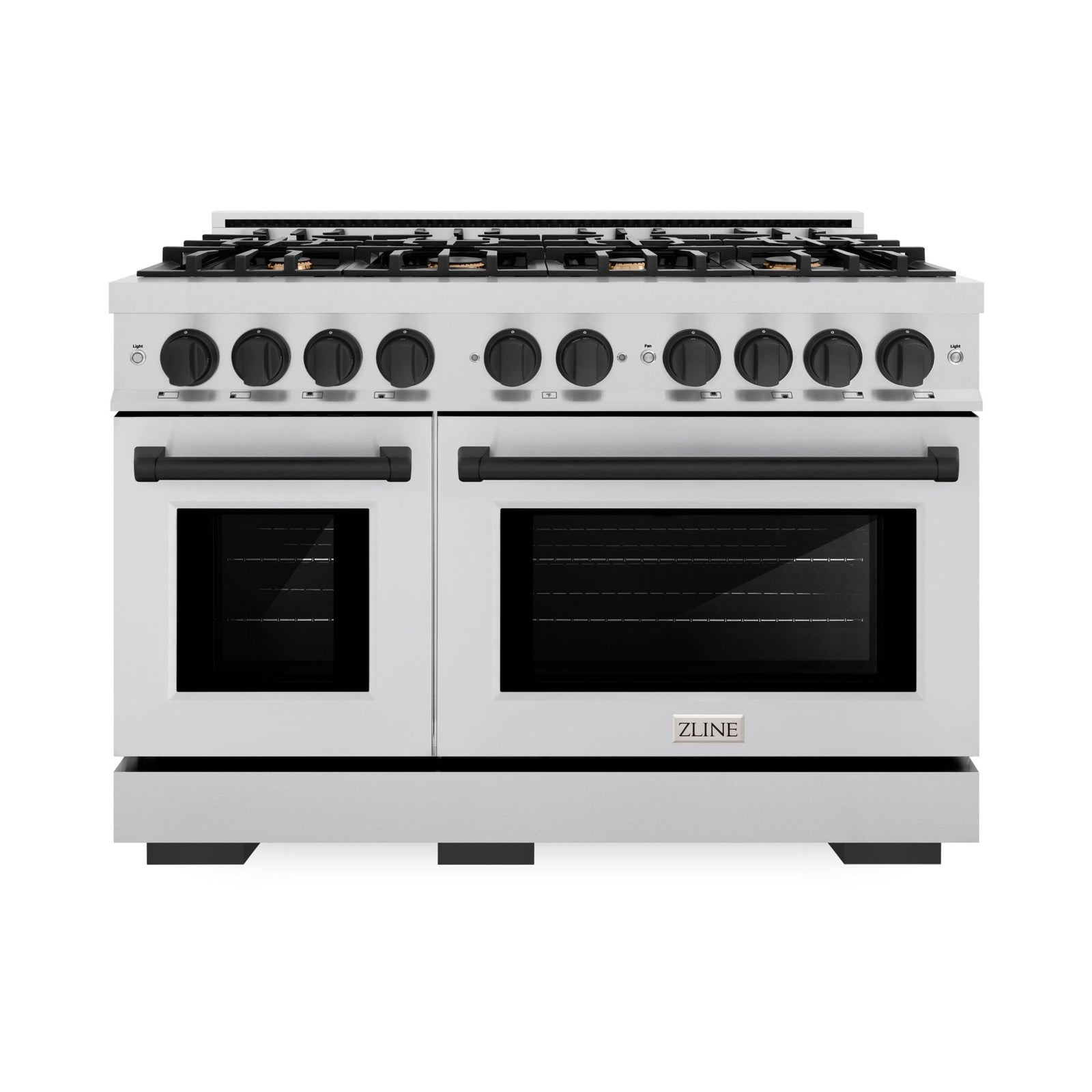 ZLINE Autograph Edition 48 in. 6.7 cu. ft. Select Double Oven Gas Range with 8 Burner Cooktop in Satin Stainless Steel and Matte Black Accents (HGRSZ-48-MB)