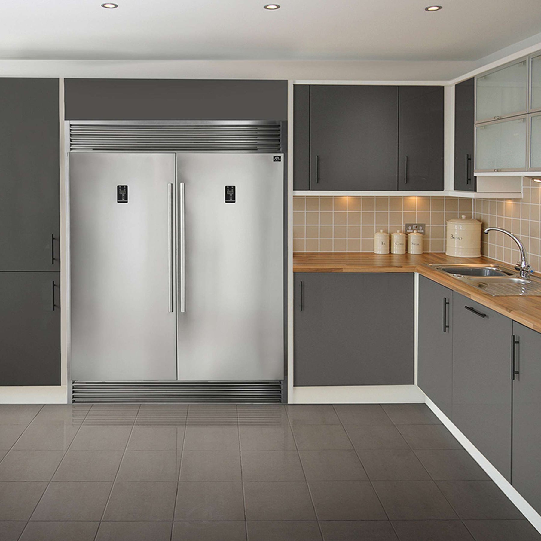 The Forno Rizzuto 56" 27.6 cu. ft. Refrigerator/Freezer Combo offers flexible storage with dual convertible zones, allowing you to switch between refrigeration and freezing based on your needs. The electronic control panel features Fahrenheit-to-Celsius temperature conversion and a clear LED display for both current settings and real-time temperature readings. Energy Star Certified for efficiency, this unit helps reduce energy consumption while keeping food fresh. Adjustable leveling legs ensure a perfect fit in any kitchen layout, while the built-in door ajar alarm prevents energy loss and spoilage by alerting you if a door is left open.