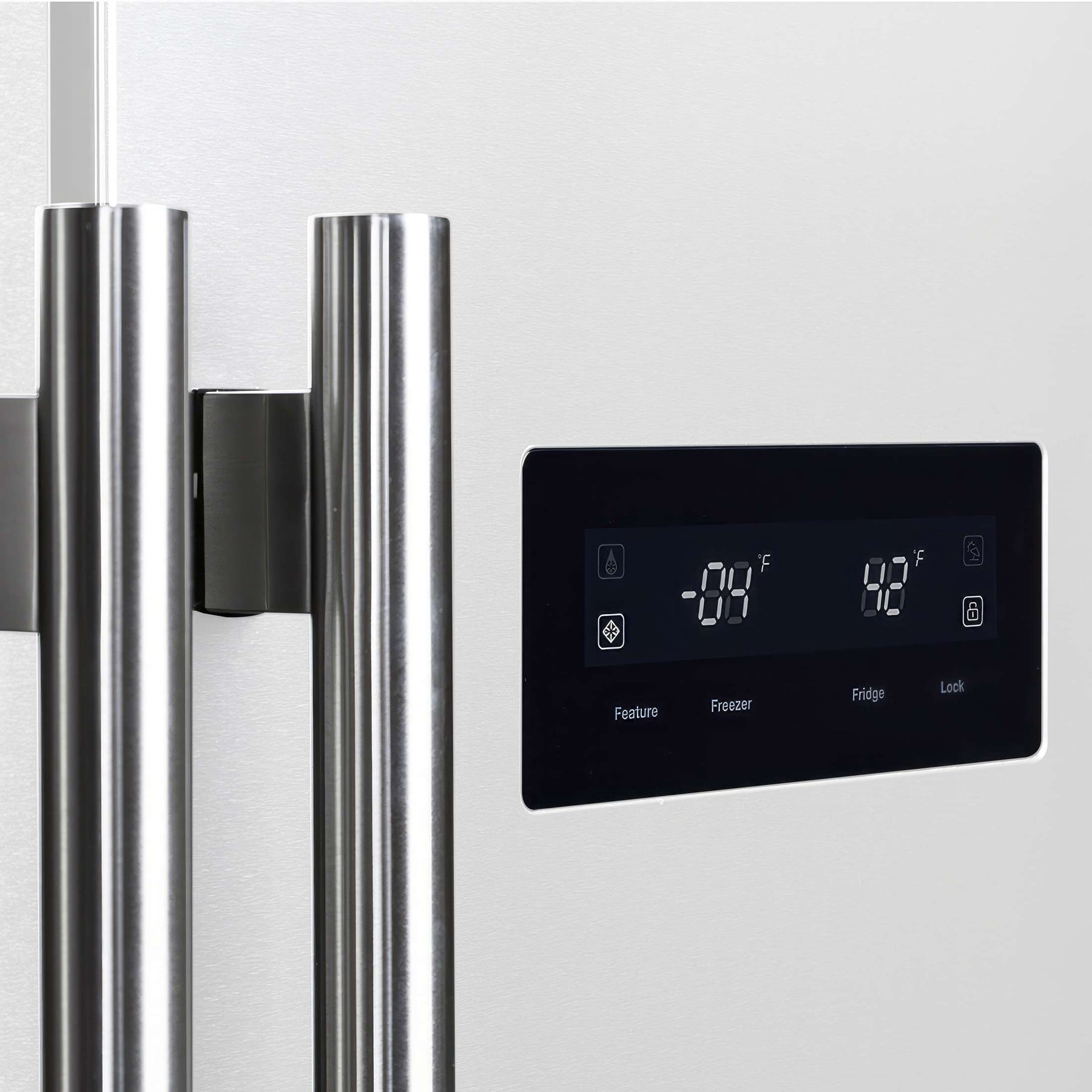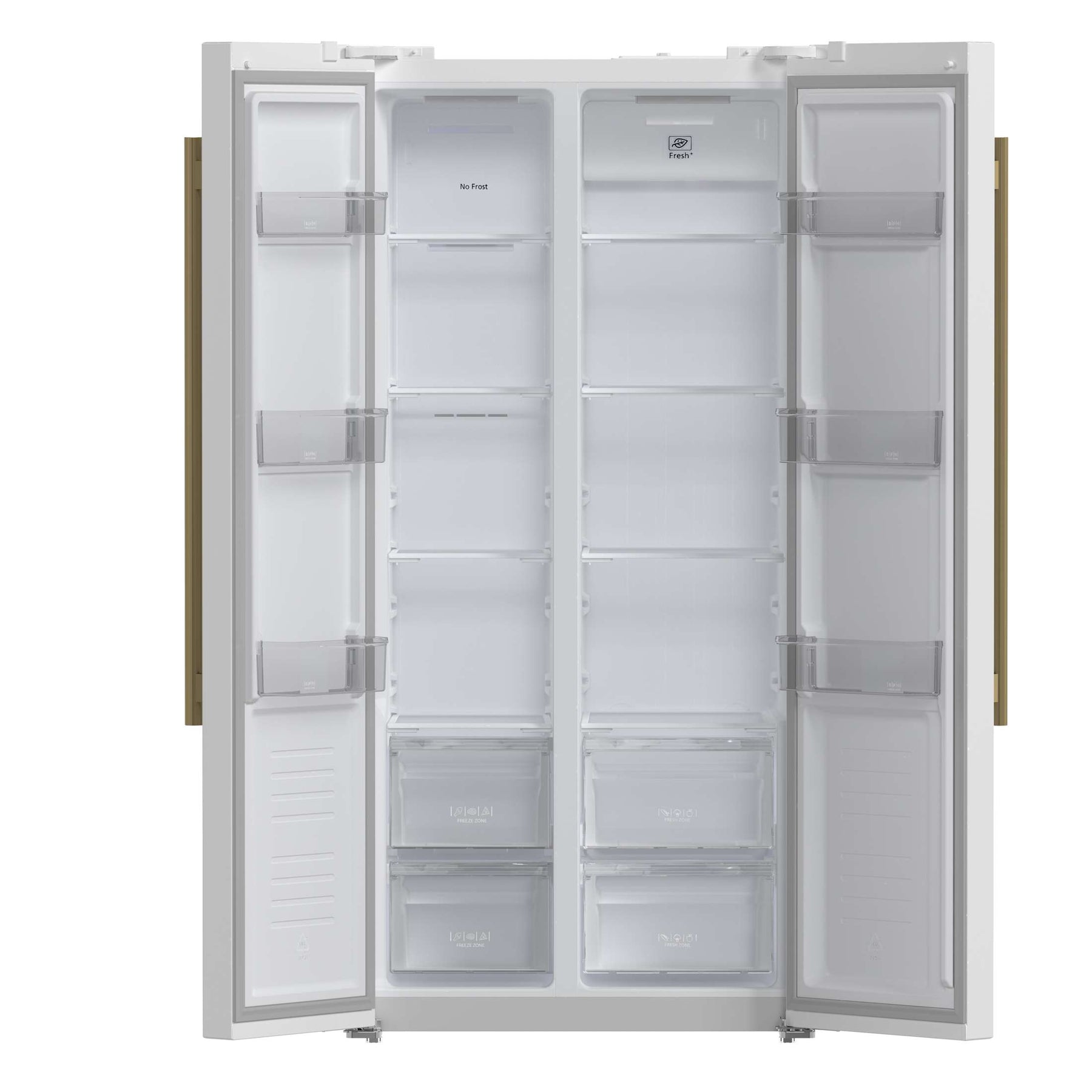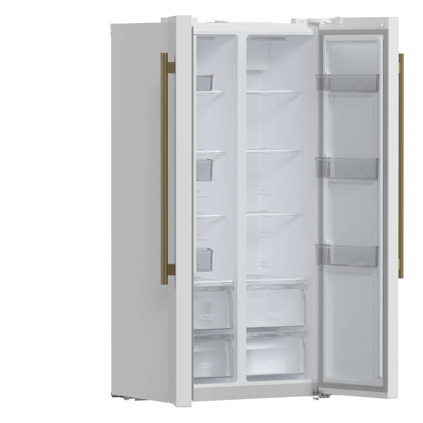 Upgrade your kitchen with the Forno Salerno 33" Side-by-Side Refrigerator in white, designed for functionality and energy-efficient performance. With a 15.6 cu. ft. total capacity, this frost-free refrigerator ensures hassle-free maintenance while keeping your food fresh. Equipped with an advanced temperature control system, this refrigerator maintains optimal cooling levels to preserve food and beverages. The intuitive LED touch panel offers effortless access to settings and controls. The fresh food compartment provides 9.54 cu. ft. of storage space, featuring three adjustable glass shelves, two crisper drawers, and three door bins for organized food storage. The freezer section offers 6.08 cu. ft. of capacity, complete with three adjustable shelves, two pull-out drawers, and three door bins, ensuring easy access to frozen essentials. With Energy Star Certification, the Forno Salerno delivers reliable performance while reducing energy consumption.