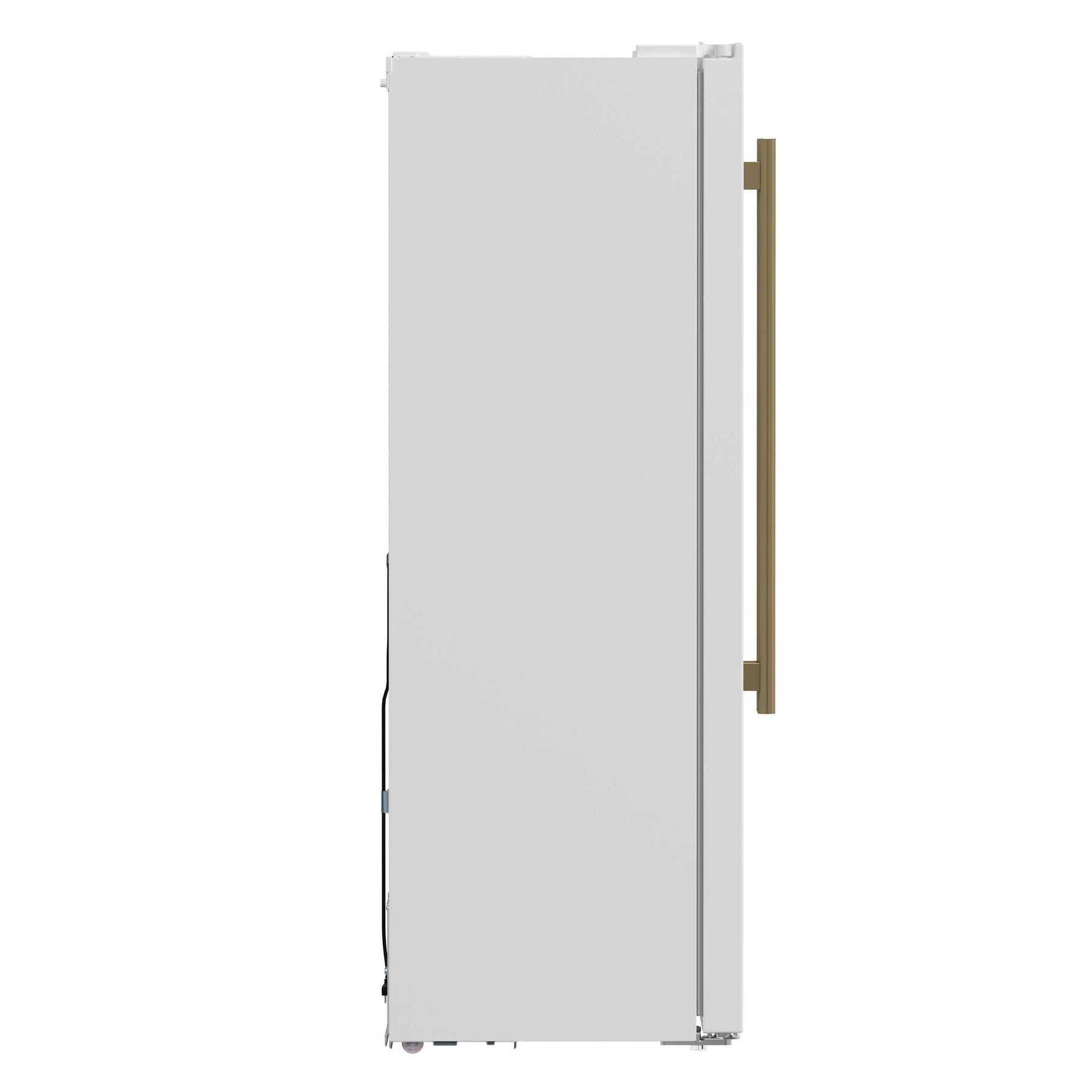 * Sleek white-finished doors with antique brass handles provide a stylish and customizable option.