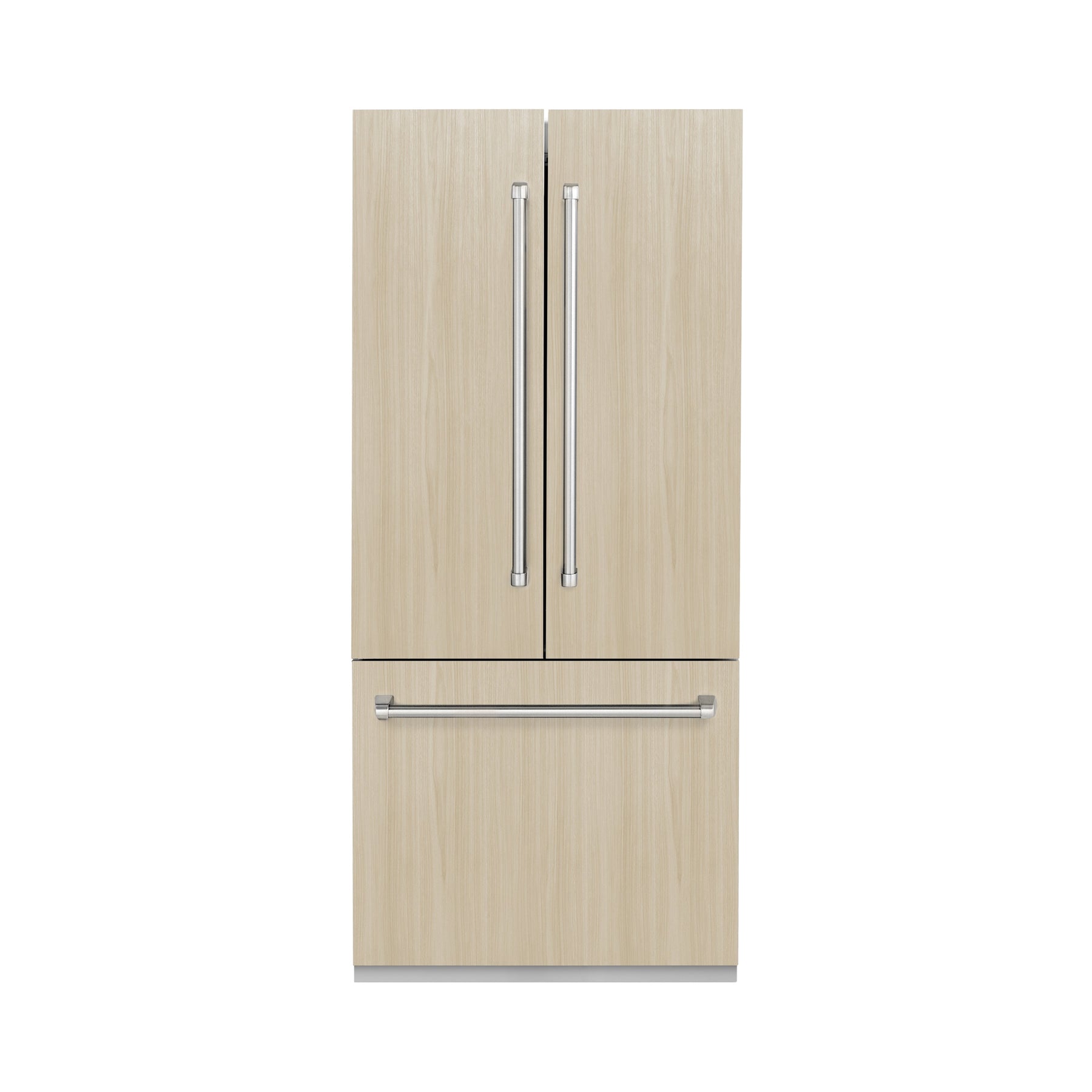 Enhance your kitchen with the ZLINE Autograph 36" 19.6 cu. ft. Built-In Panel-Ready 2-Door Bottom Freezer Refrigerator. This refrigerator combines high-quality performance with classic design, offering advanced capabilities such as adjustable temperatures, RapidChill Mode, and a concealed internal water and ice dispenser. Experience ZLINE's Attainable Luxury with this refrigerator, seamlessly blending innovation, elegance, and efficiency.