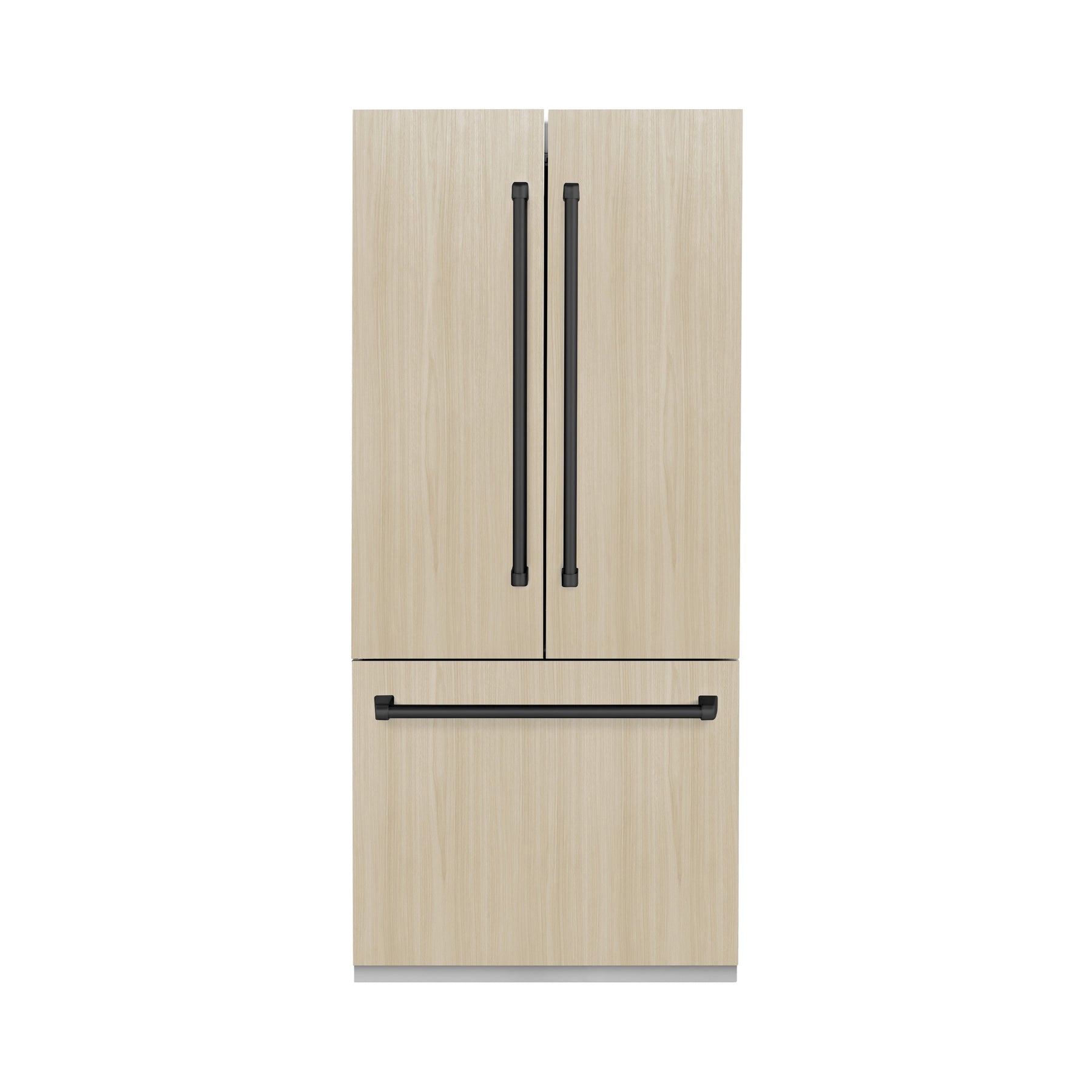 Enhance your kitchen with the ZLINE Autograph 36" 19.6 cu. ft. Built-In Panel-Ready 2-Door Bottom Freezer Refrigerator. This refrigerator combines high-quality performance with classic design, offering advanced capabilities such as adjustable temperatures, RapidChill Mode, and a concealed internal water and ice dispenser. Experience ZLINE's Attainable Luxury with this refrigerator, seamlessly blending innovation, elegance, and efficiency.