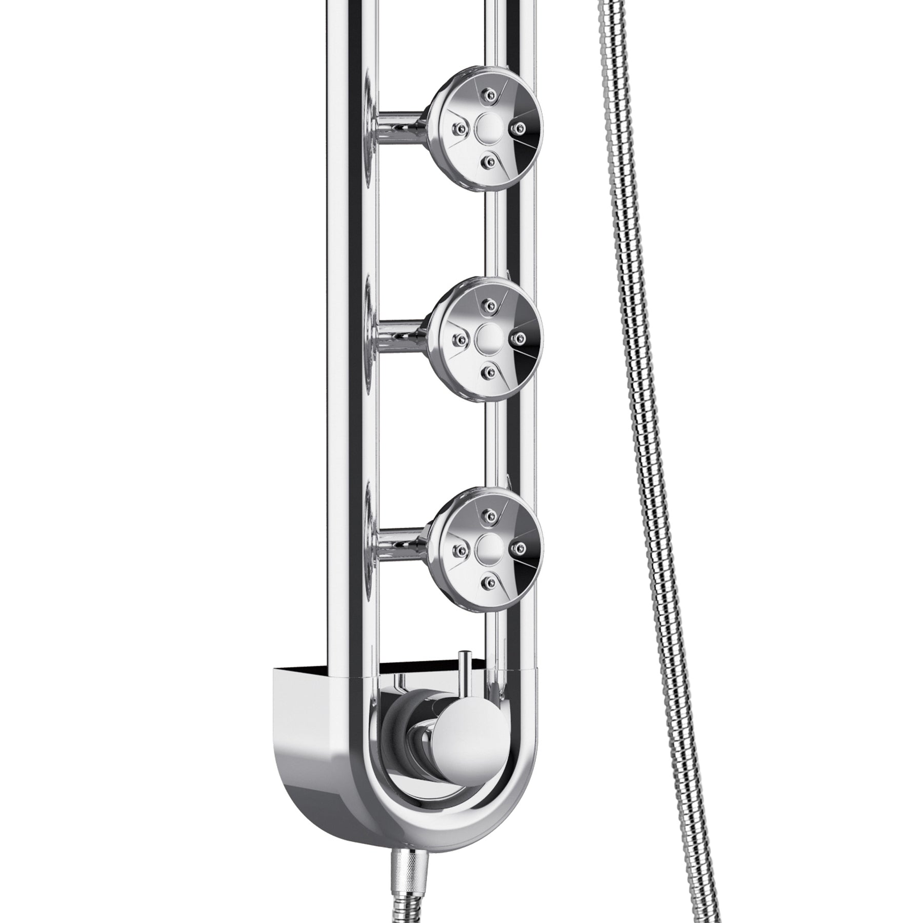 The Saturn Shower System by PULSE ShowerSpas is a beautifully unique designed shower combo that adds to the contemporary look of any shower. The 8 inch rain showerhead provides a soothing rainfall experience while the multi-function handshower allows you to reach every part of your body easily. The handshower rests conveniently on the handshower holder attached to the built-in slide bar and allows you to vertically adjust the height. 3 PULSE PowerSpray body jets give you an added bonus by allowing you to shut off the top two body jets to maximize the water pressure to the bottom jet for a soothing massage-like spray. The convenient diverter located at the bottom of the system allows you to easily choose your desired function. The Saturn Shower System is designed be installed as a retro-fit and can also be used in a complete remodel. Mixing valve not included.