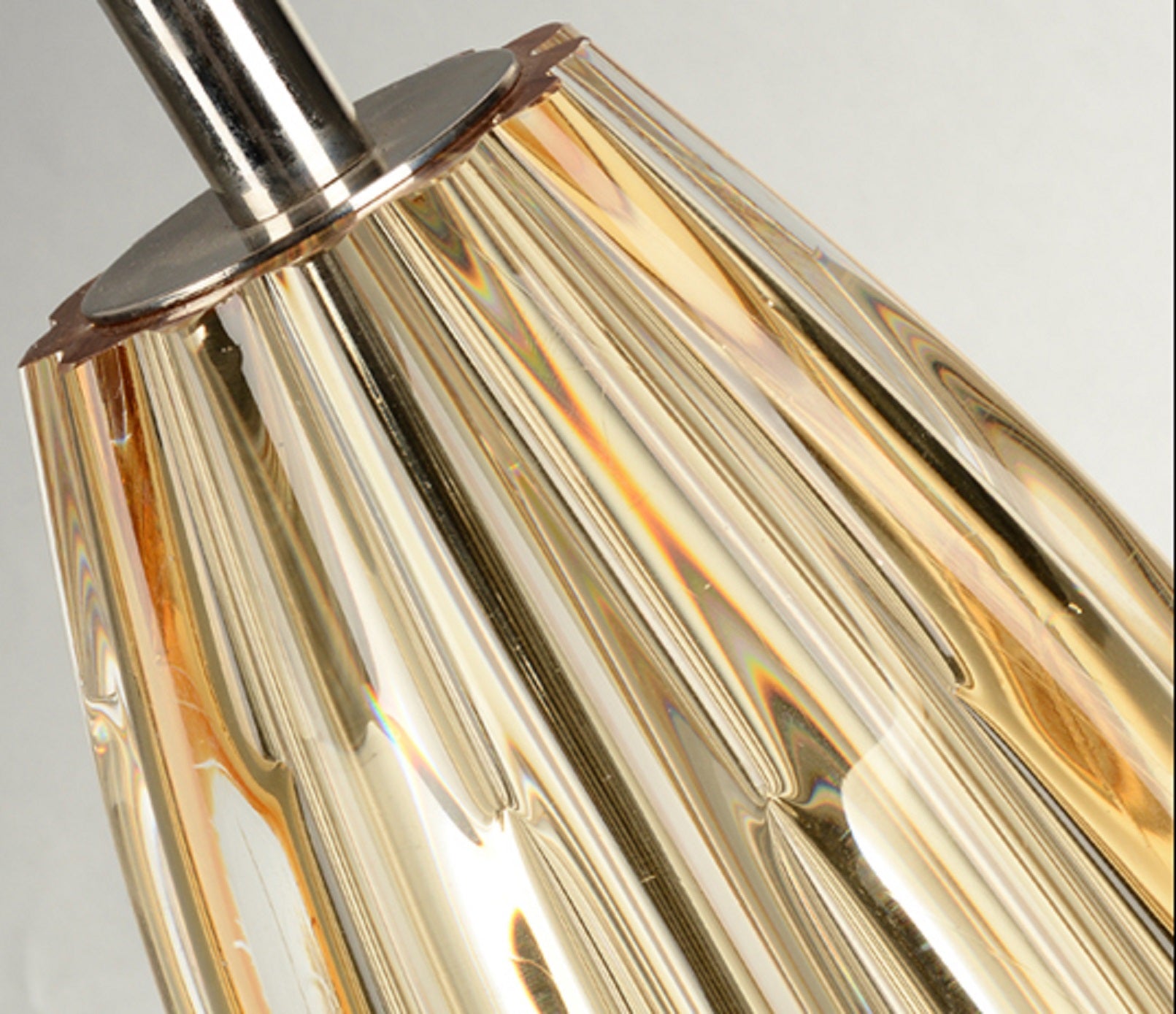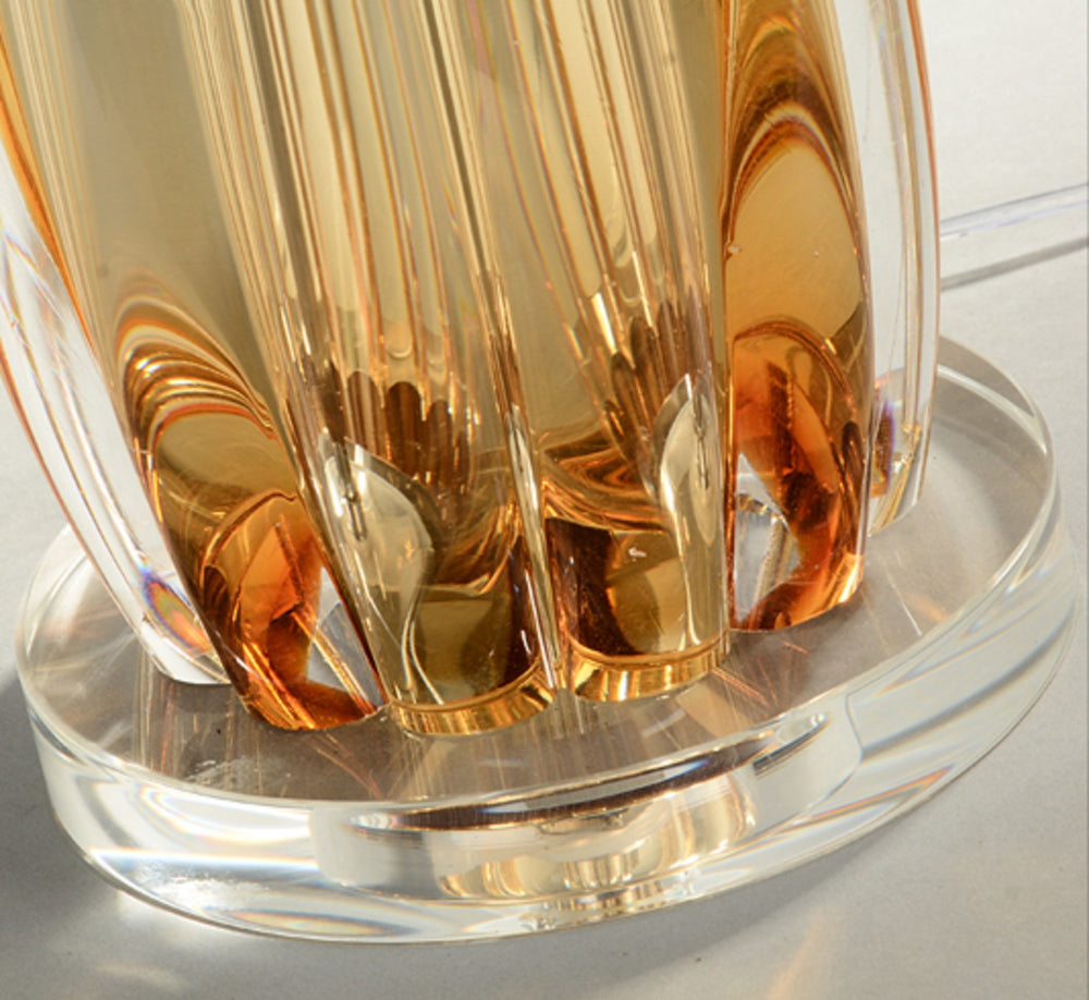Sitting pretty on top of a circular crystal base, our charming Cognac is a richly colored lamp that is the perfect focal point for your transitional, modern or traditional interior space. At 25 inches in height the Cognac is easily placeable in many settings, and its soft warm light filters through the white drum shade, balancing function and beauty. Hand-shaped facets create a long prismatic look, with a simple nickel bulb holder completing the handsome look.
