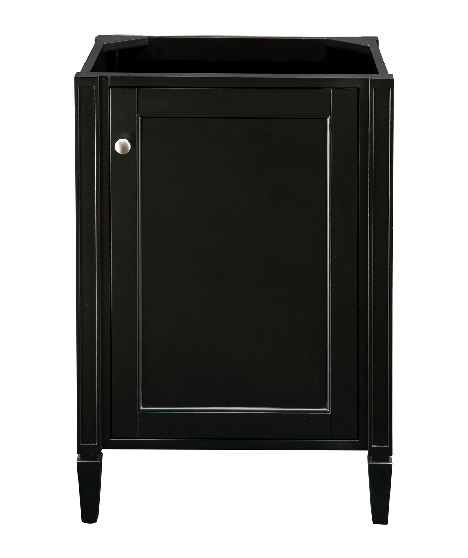 The streamlined structure of the Britannia 24" Single Vanity Cabinet by James Martin Vanities has a visually elegant appearance. This beautiful cabinet is constructed with poplar solids and veneers featuring a Black Onyx finish. It has one full size door that conceals a spacious storage area. Small and demure, this vanity has an uncomplicated silhouette that will bring a quiet elegance to any bathroom. Please note, this is the vanity cabinet only- a countertop is not included with this cabinet.