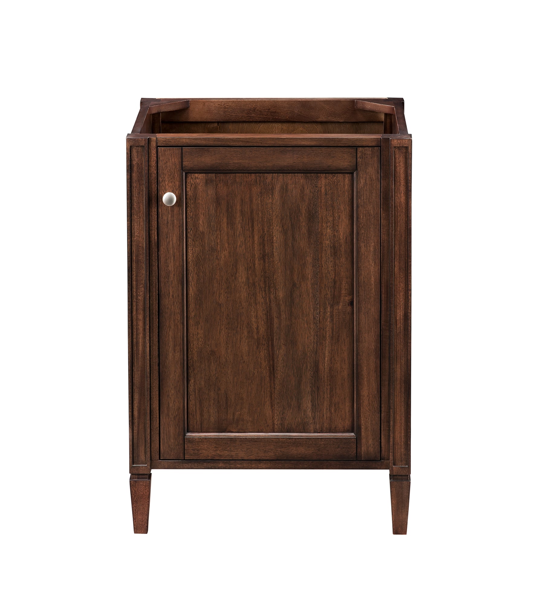 The streamlined structure of the Britannia 24" Single Vanity Cabinet by James Martin Vanities has a visually elegant appearance. This beautiful cabinet is constructed with poplar solids and veneers featuring a Mid-Century Acacia finish. It has one full size door that conceals a spacious storage area. Small and demure, this vanity has an uncomplicated silhouette that will bring a quiet elegance to any bathroom. Please note, this is the vanity cabinet only- a countertop is not included with this cabinet.