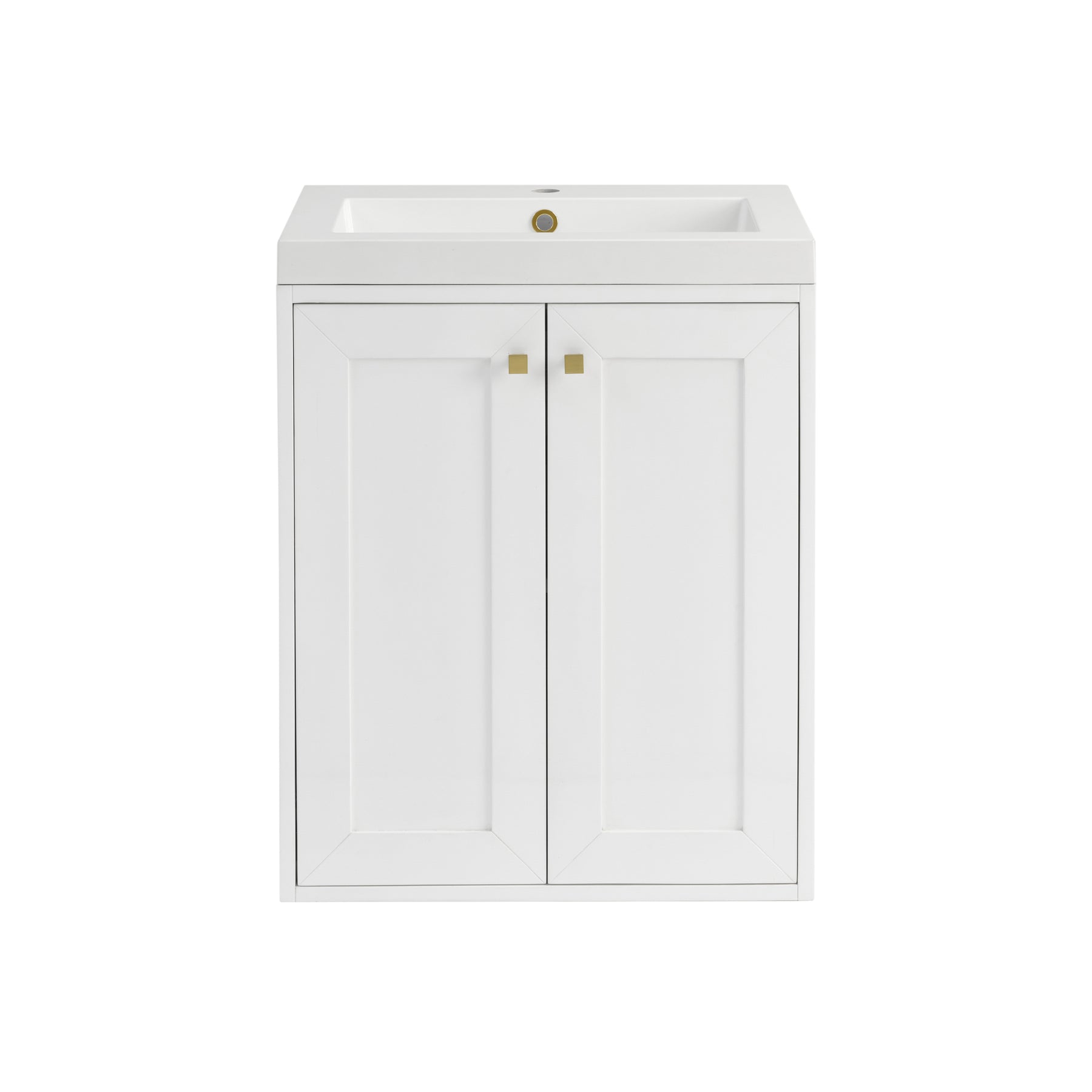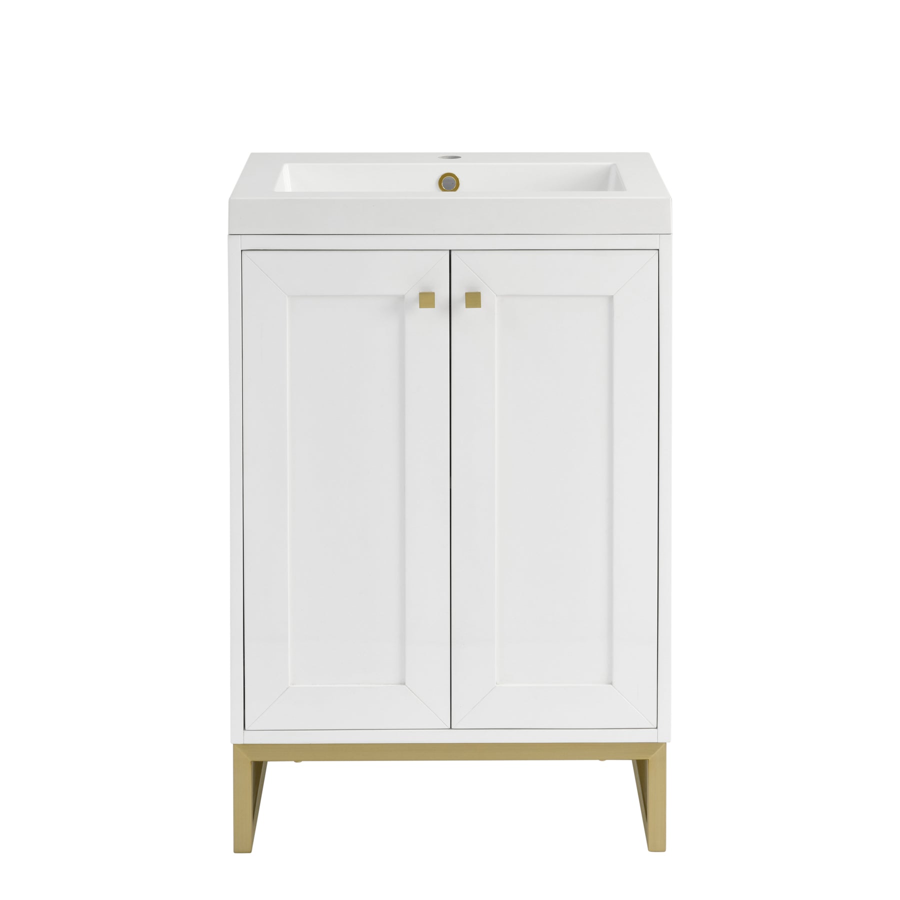 Upgrade your bathroom with the modern simplicity of the Chianti 24" Single Vanity by James Martin Vanities. Crafted from solid hardwoods with a sleek Glossy White finish and topped with a White Glossy Composite Stone countertop, this compact vanity combines style with functionality.