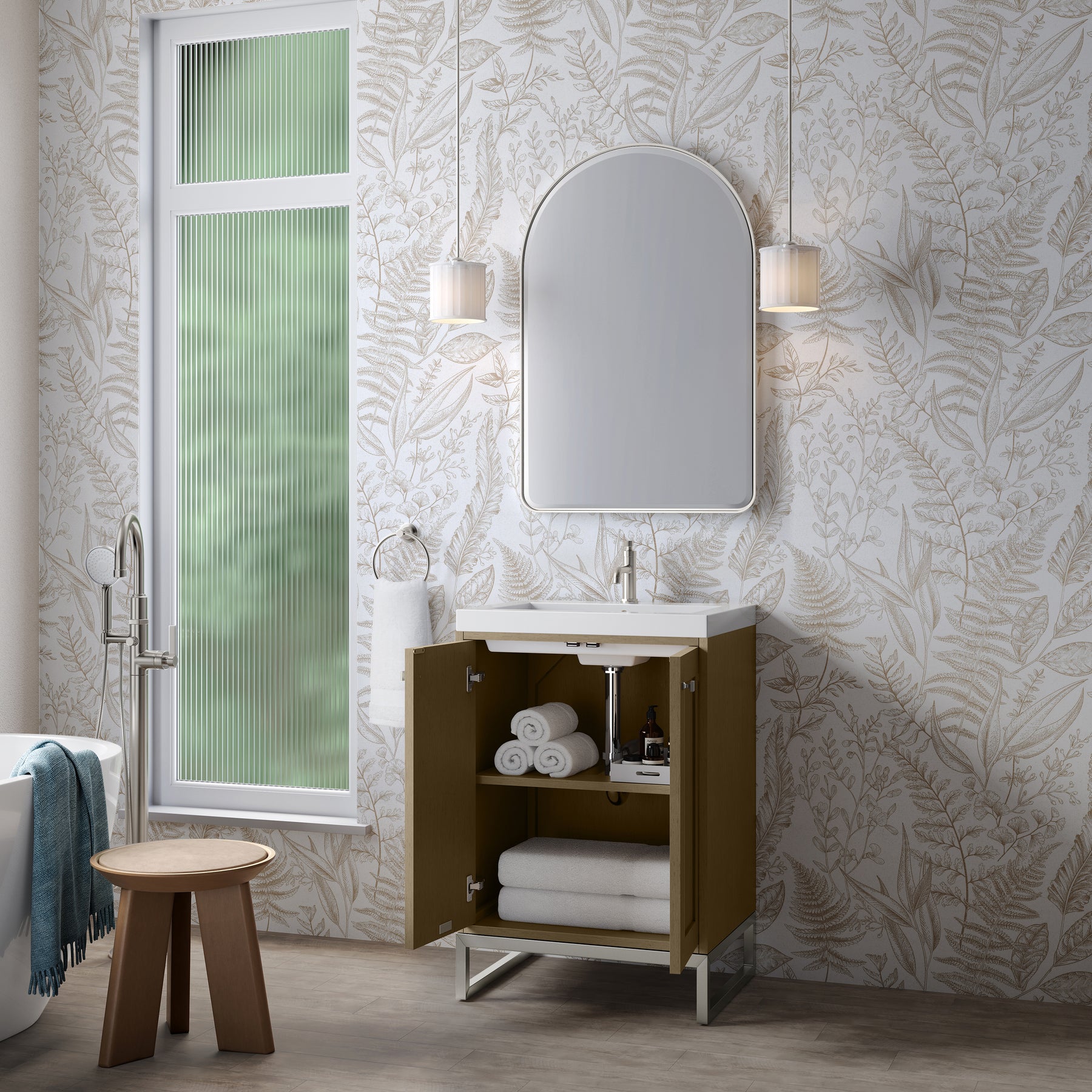 Designed for versatility, the Chianti comes with a Brushed Nickel stainless-steel base, or opt to wall-mount for a contemporary, space-saving look. Perfect for smaller spaces like powder rooms or half baths, the streamlined design provides ample storage in a compact footprint. Square knobs in all three metal finishes are included to complete the look, seamlessly coordinating with the base options.