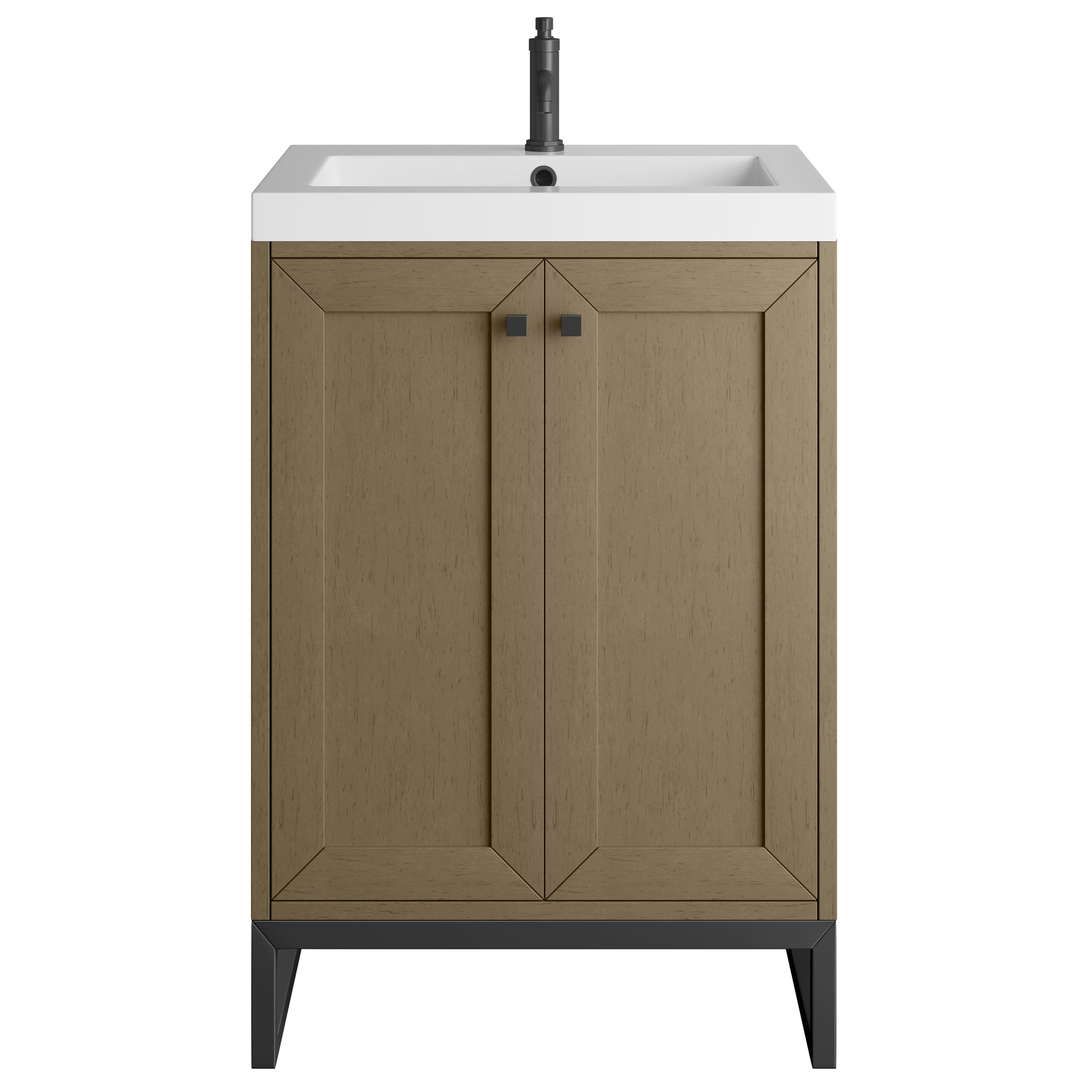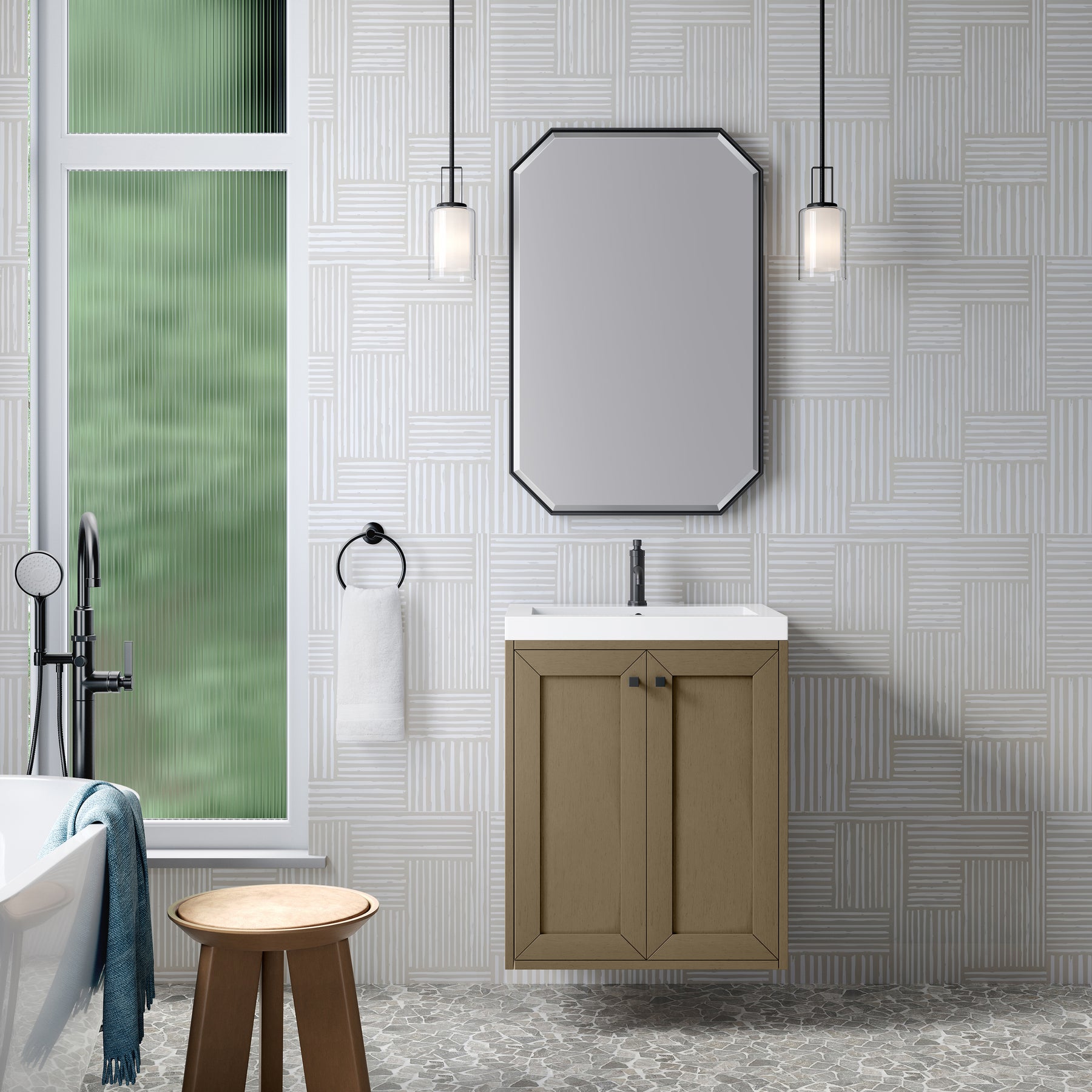 Upgrade your bathroom with the modern simplicity of the Chianti 24" Single Vanity by James Martin Vanities. Crafted from solid hardwoods with a classic Walnut Whisper finish and topped with a White Glossy Composite Stone countertop, this compact vanity combines style with functionality.