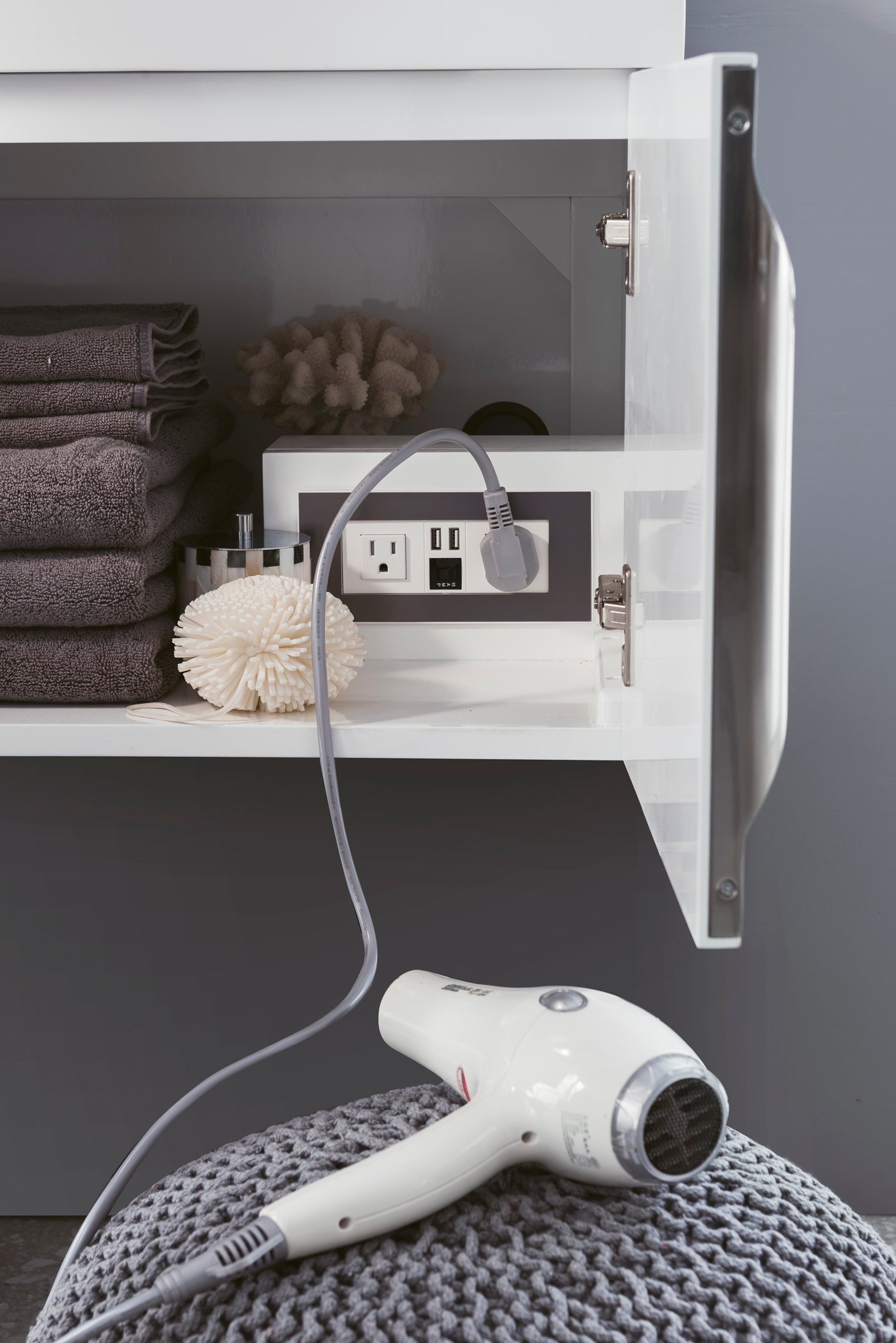 The Columbia 72" Glossy White Single Vanity offers maximum storage with four soft-closing doors and three soft-closing drawers. This cabinet includes premium features such as one solid bamboo drawer organizer and one 120 Volt UL Rated electrical component with two electrical and two USB outlets. Cabinet includes Brushed Nickel door and drawer pulls. Glossy White Composite Stone countertop with integrated wide, angled trough-style sink. This wall-mounted vanity includes heavy duty mounting brackets to create a modern look.