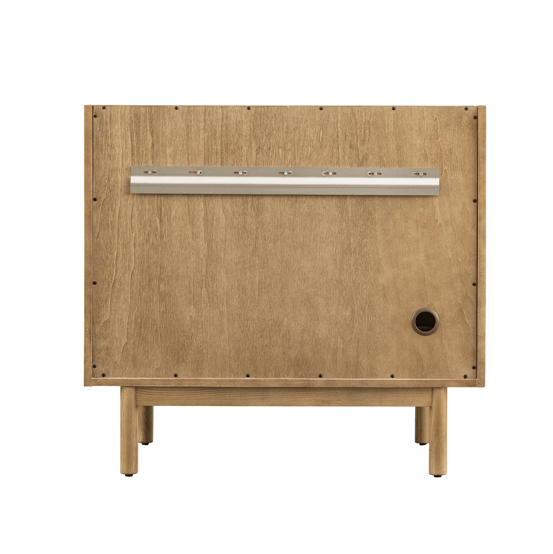 A modern interpretation of mid-century design, the Laurent 36" Single Vanity features organic charm with soft, rounded picture-frame details. Its Light Natural Oak finish over cathedral grain Ash veneers highlights the beautiful, natural wood texture, while Champagne Brass knobs lend a touch of elegance. Designed for versatility, this vanity offers a top-row tip-out drawer and two full-extension drawers with a removable bamboo drawer organizer. The single cabinet door opens to an adjustable shelf and a conveniently integrated USB/120V power unit. Choose to install the Laurent as a freestanding vanity with the modern wood base, or float it on your wall using our durable French cleat hardware. Perfectly crafted and beautifully appointed, Laurent brings an understated elegance to any bathroom. Select one of our 3 cm tops to complete the look.
