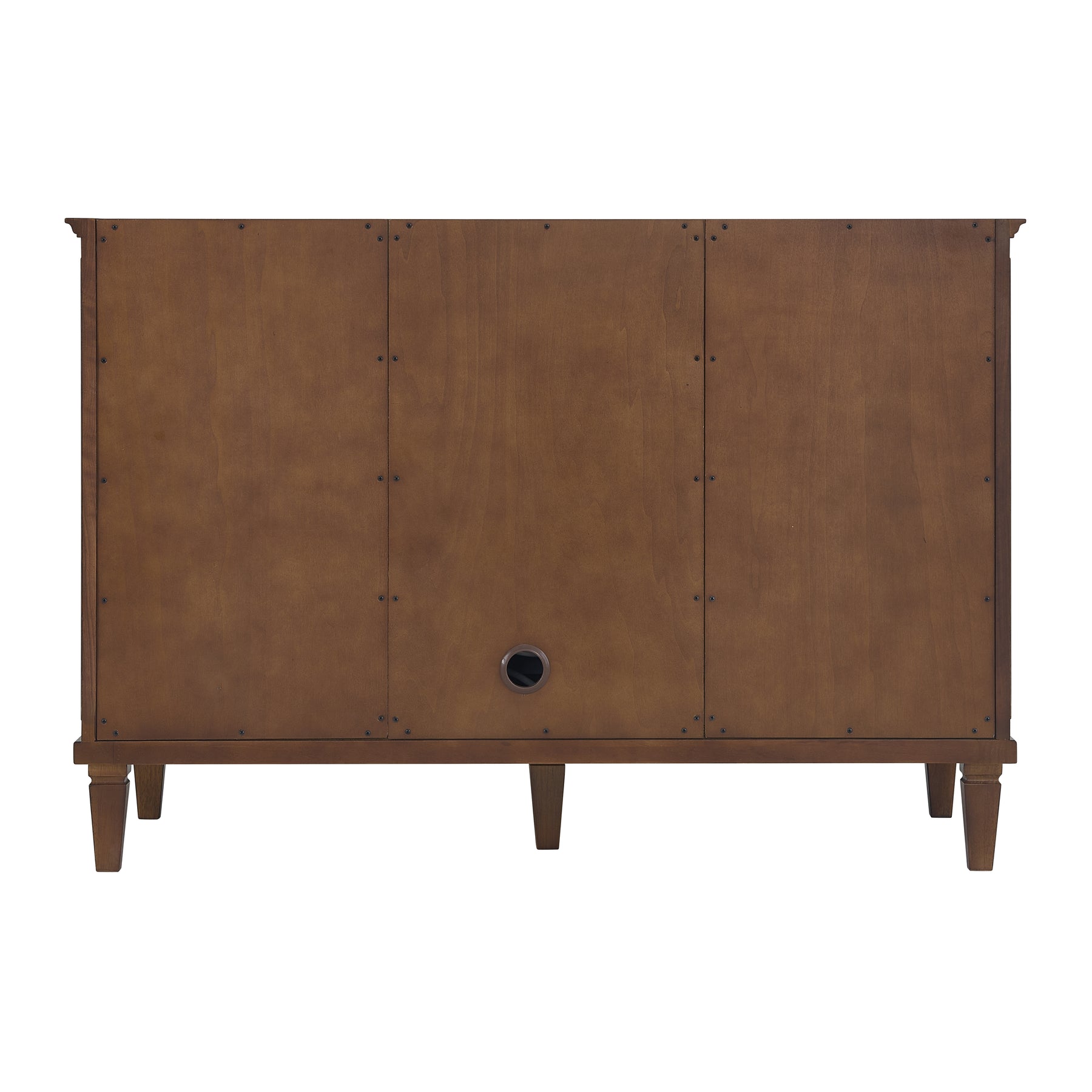 The 48" Lorelai Single Vanity celebrates timeless form and exquisite finish details, combined with practical function. The beauty of the natural grains in the walnut veneer is accented by reeded details, and clean, raised picture frame molding. The decorative, coin-edge knobs in Champagne Brass provide the perfect complement to the Mid-Century Walnut finish. This single-door cabinet opens to a spacious interior with a single shelf and a convenient USB/Electric power outlet. Six drawers plus one tip-out drawer offer additional storage space. The addition of a Ethereal Noctis Silestone top by Cosentino with undermount rectangular sink completes this timeless bathroom centerpiece with its modern, intricate black and gray nuances which add contrast and elegance to the white background.
