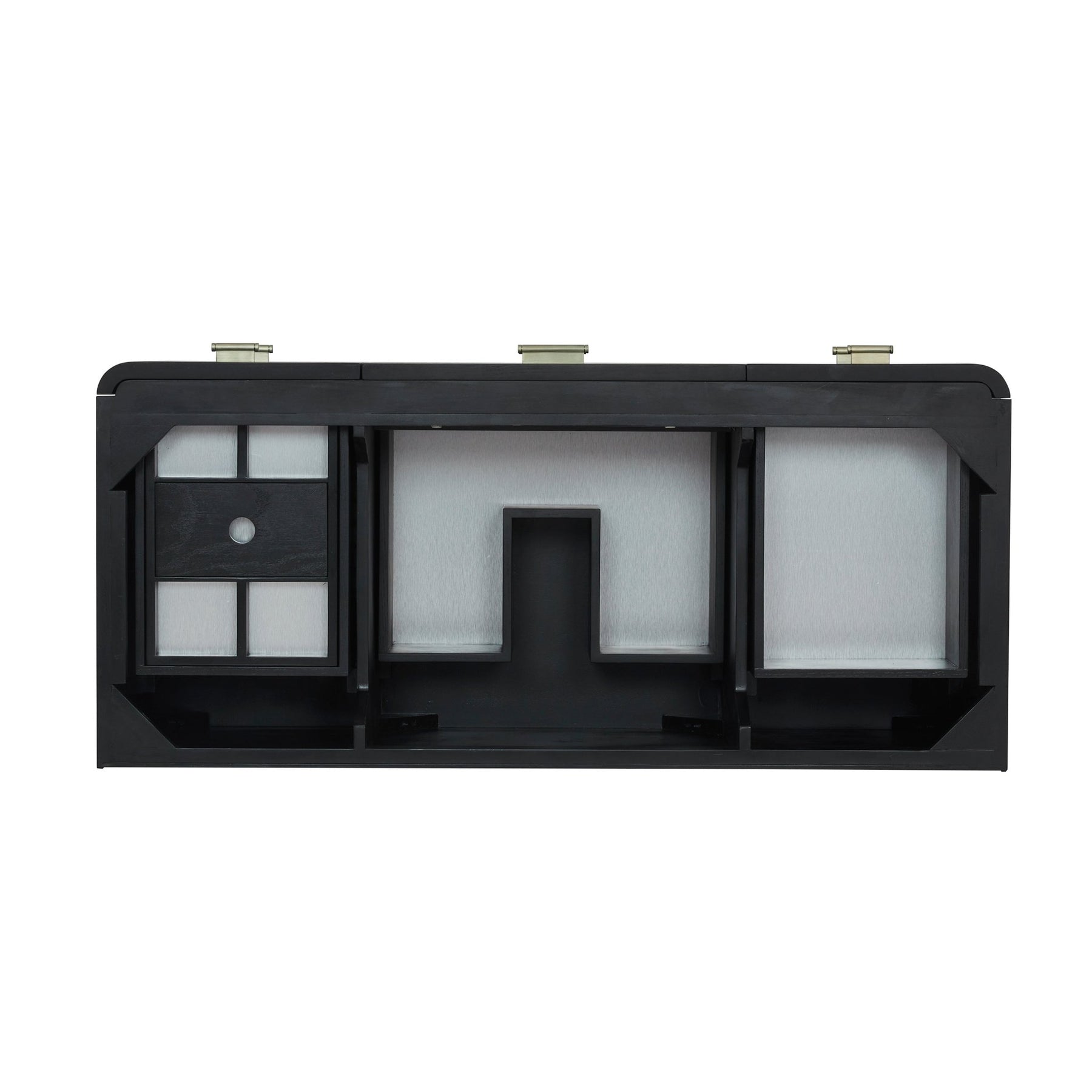 The Lucian 48” single vanity is a visual delight, boasting a rich Carbon Oak finish that adds warmth and character to your space. Complemented by Champagne Brass hardware, the ribbed detailing is meticulously crafted. Enjoy ample storage with one tip-out drawer and five traditional drawers, while a lower exposed shelf adds versatility to your storage solutions. Complete the look with one of our Silestone tops with undermount porcelain sink for a seamless integration of modern design and functionality.