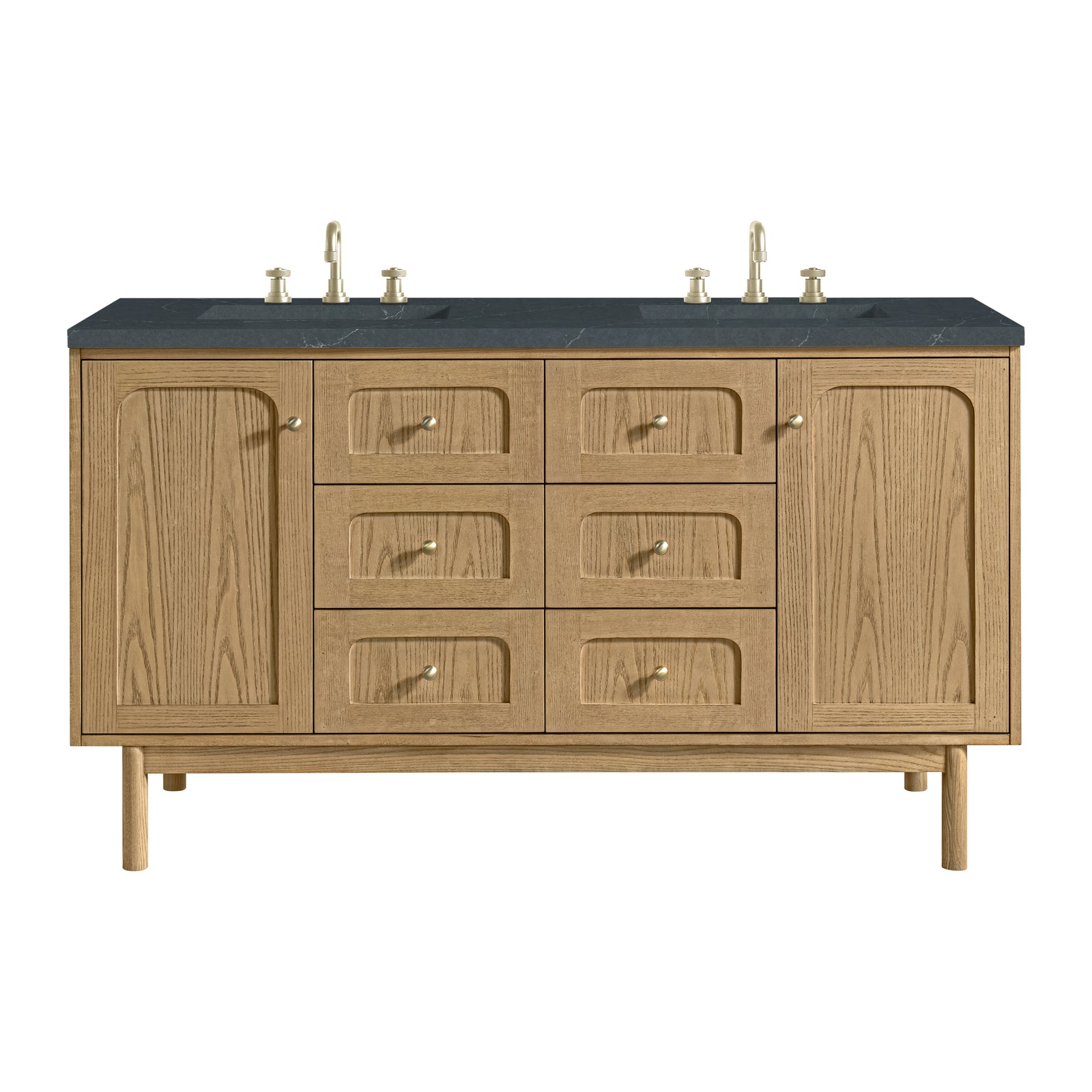 Laurent 60" Double Vanity, Light Natural Oak, w/ 3 CM Charcoal Soapstone Quartz Top