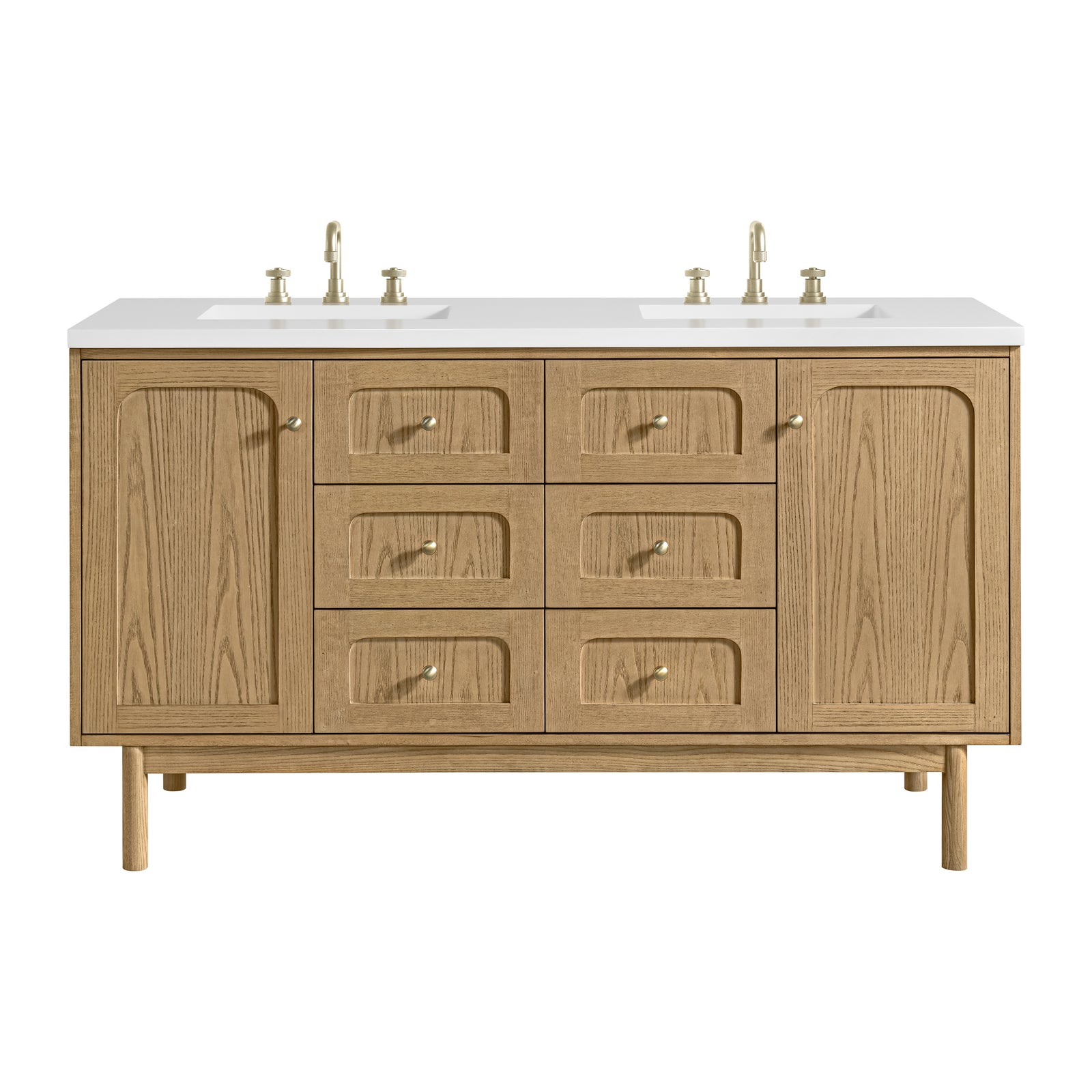Laurent 60" Double Vanity, Light Natural Oak, w/ 3 CM Arctic Fall Solid Surface Top
