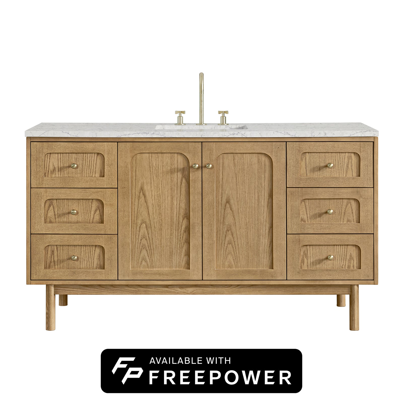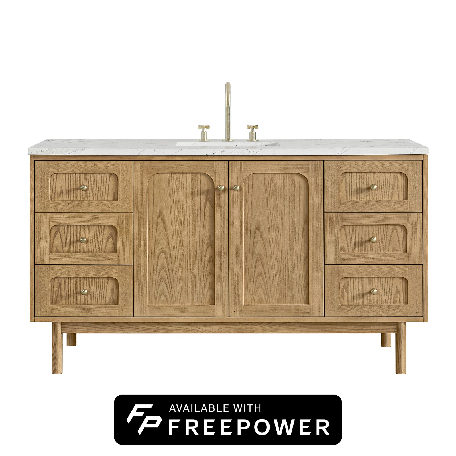 Laurent 60" Single Vanity, Light Natural Oak, w/ 3 CM Eternal Jasmine Pearl Silestone Top w/ FreePower Wireless Charger