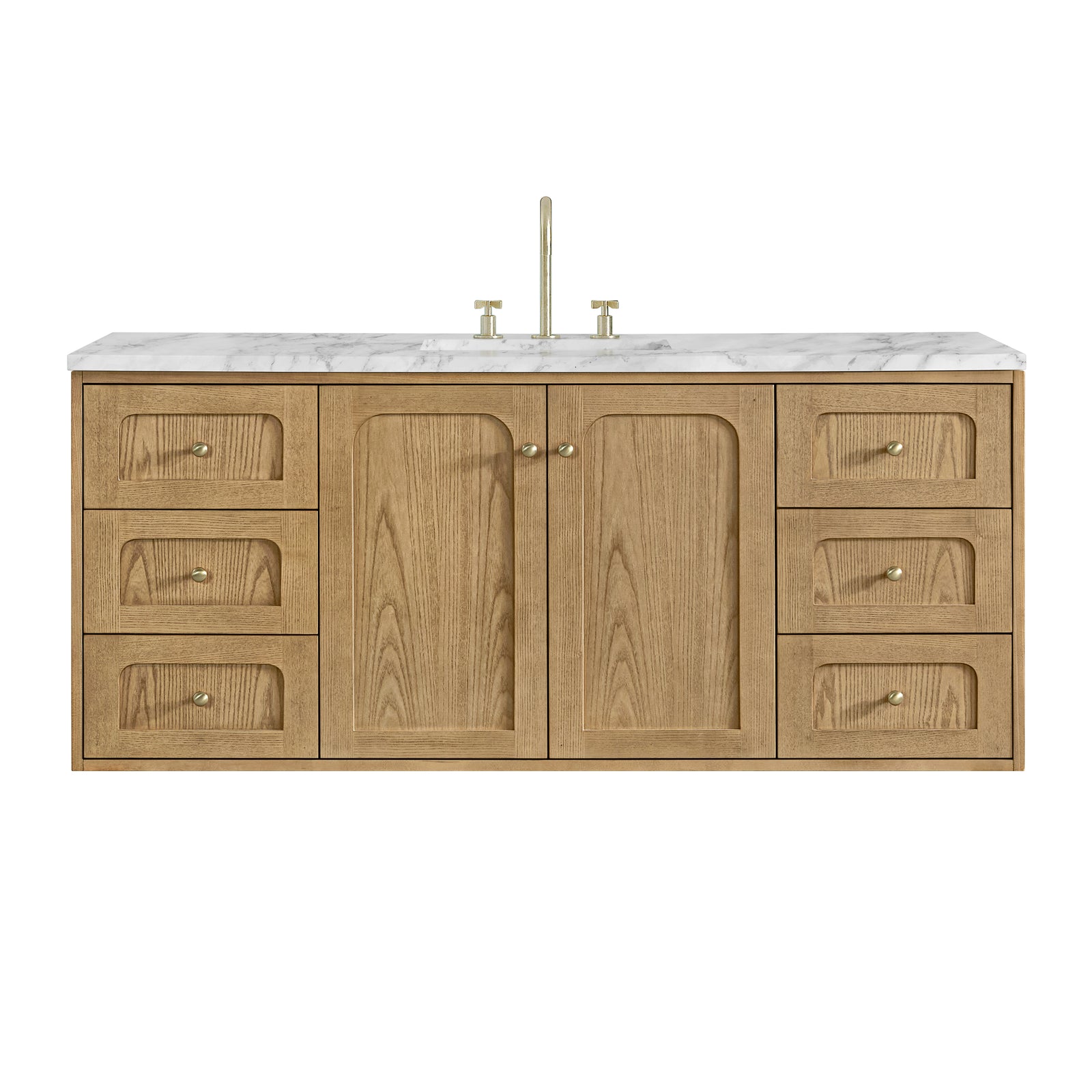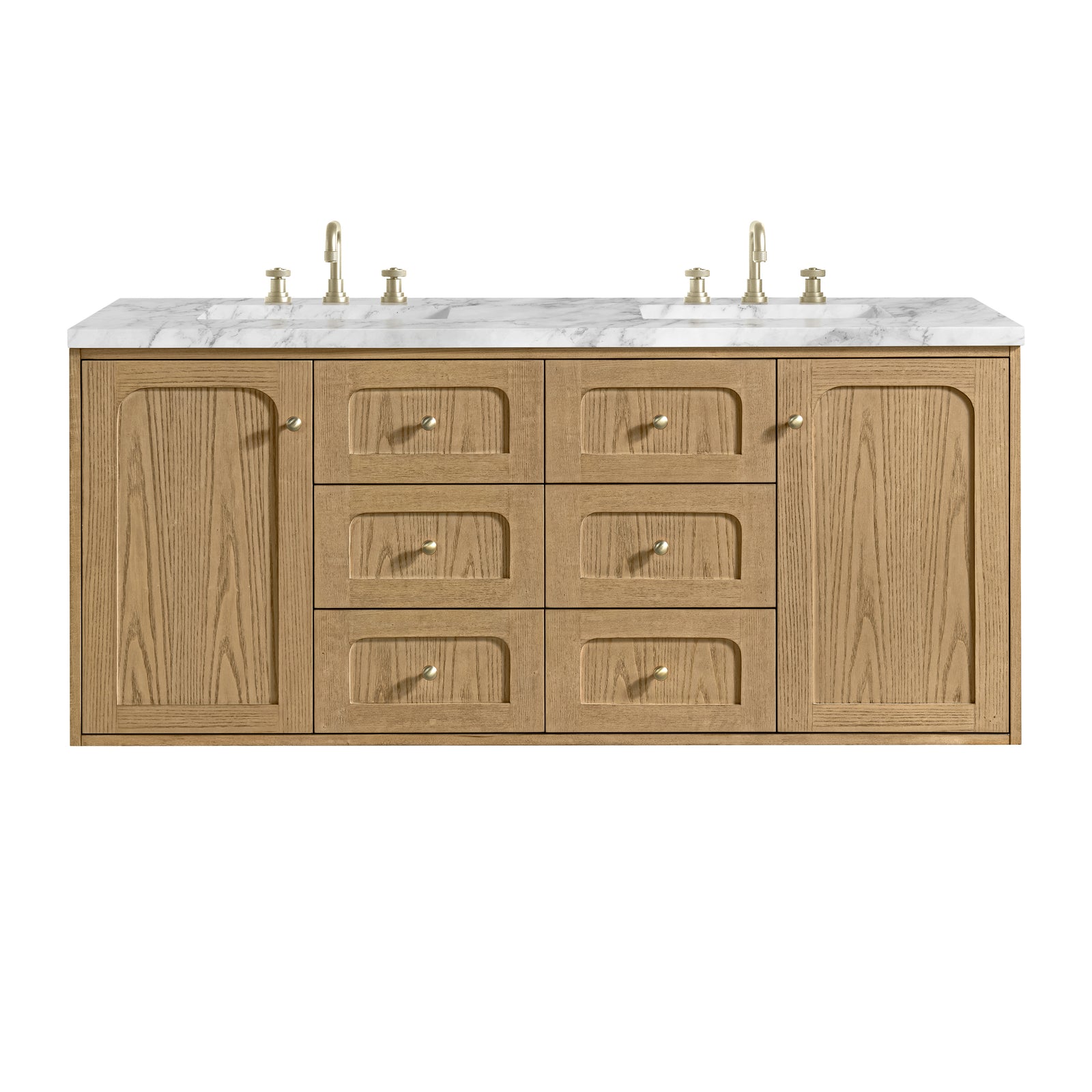 Laurent 60" Double Vanity, Light Natural Oak, w/ 3 CM Carrara Marble Top