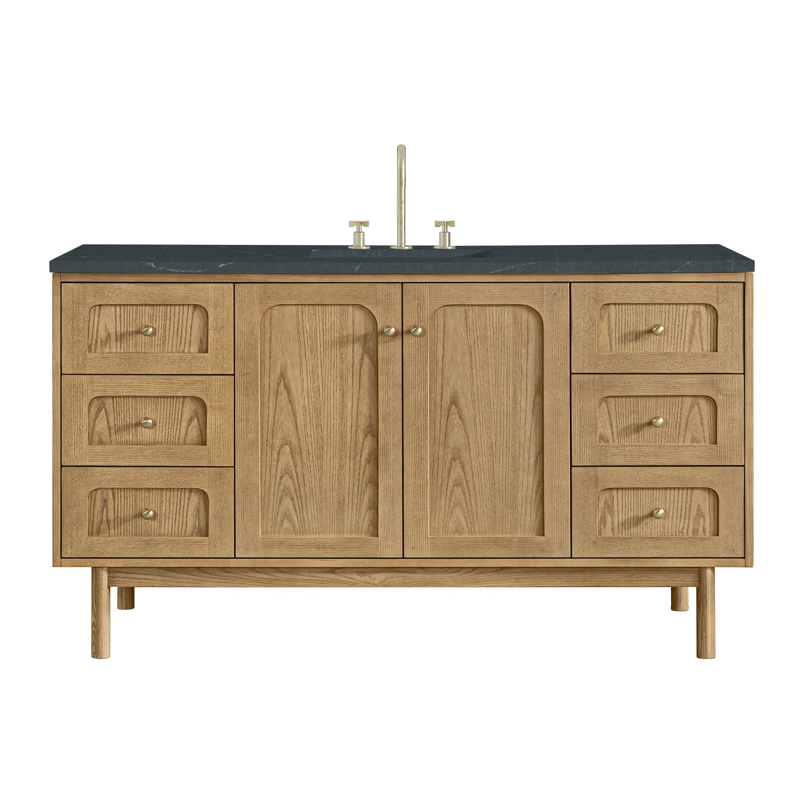 Laurent 60" Single Vanity, Light Natural Oak, w/ 3 CM Charcoal Soapstone Quartz Top