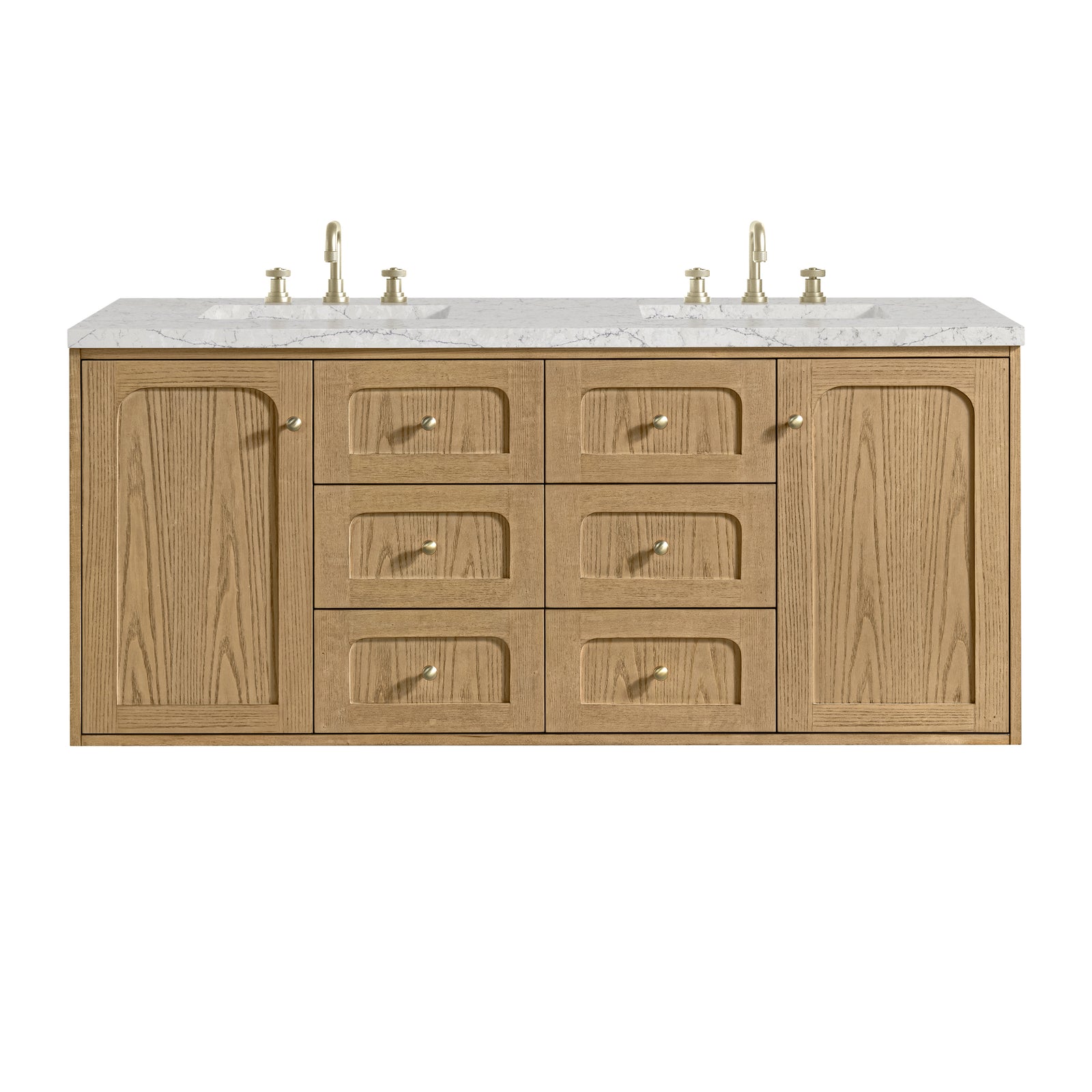 Laurent 60" Double Vanity, Light Natural Oak, w/ 3 CM Eternal Jasmine Pearl Quartz Top