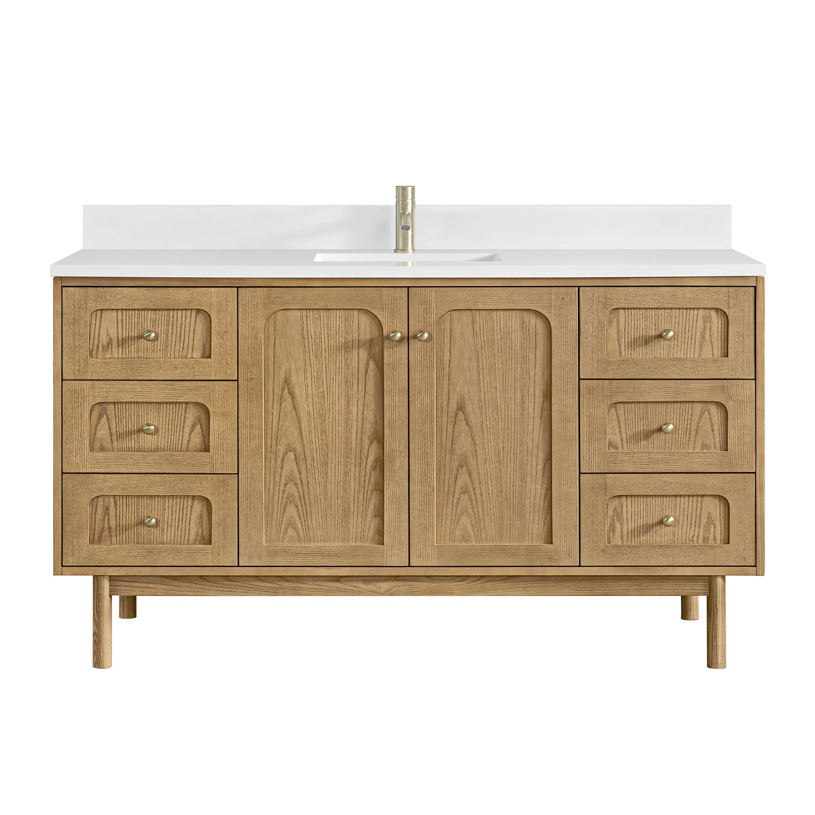 Laurent 60" Single Vanity, Light Natural Oak, w/ 3 CM White Zeus Quartz Top
