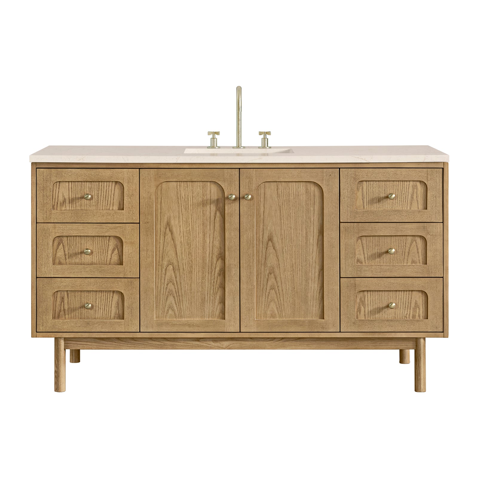 Laurent 60" Single Vanity, Light Natural Oak, w/ 3 CM Eternal Jasmine Pearl Quartz Top