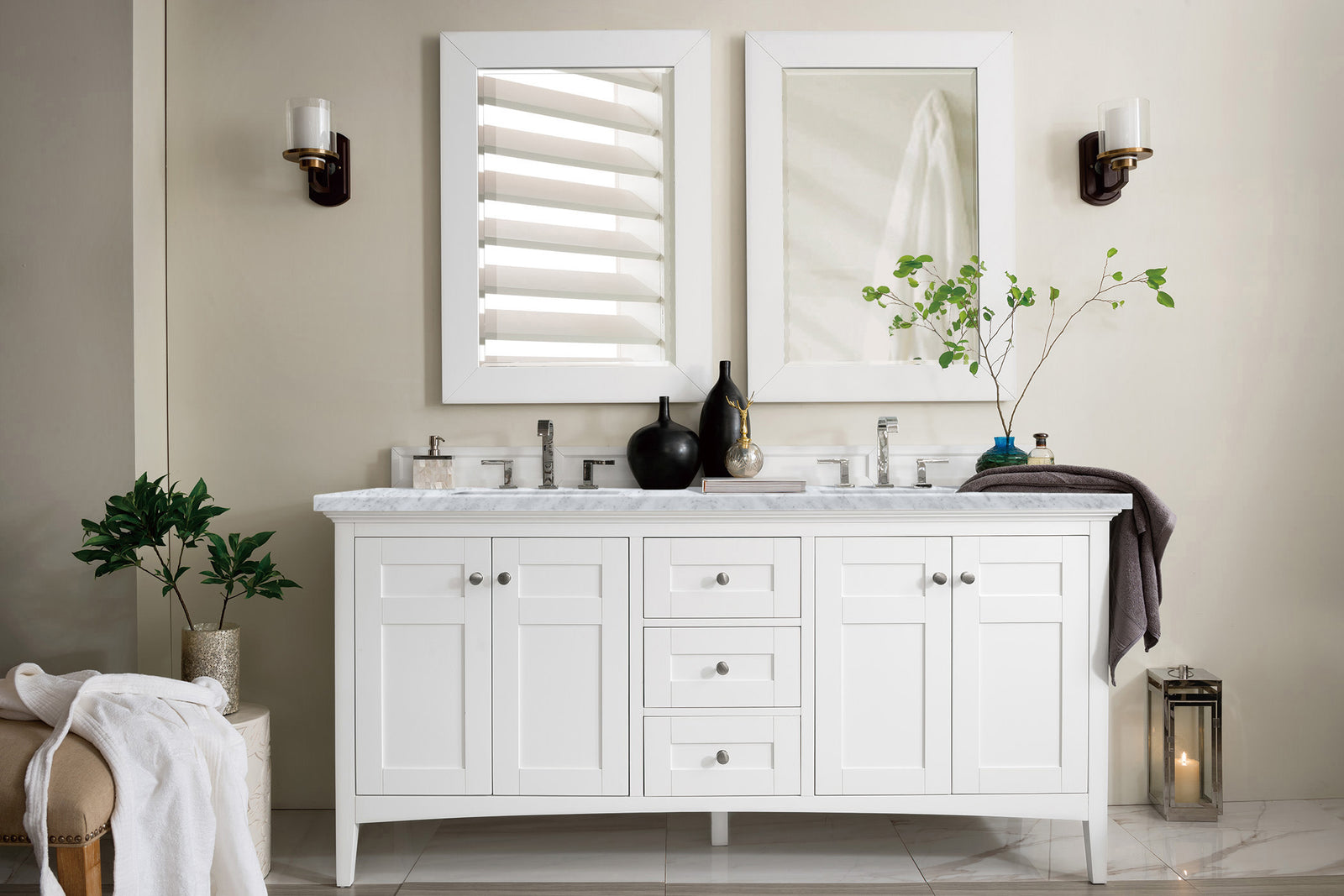 Palisades 72" Double Vanity, Bright White w/ 3 CM Carrara Marble Top