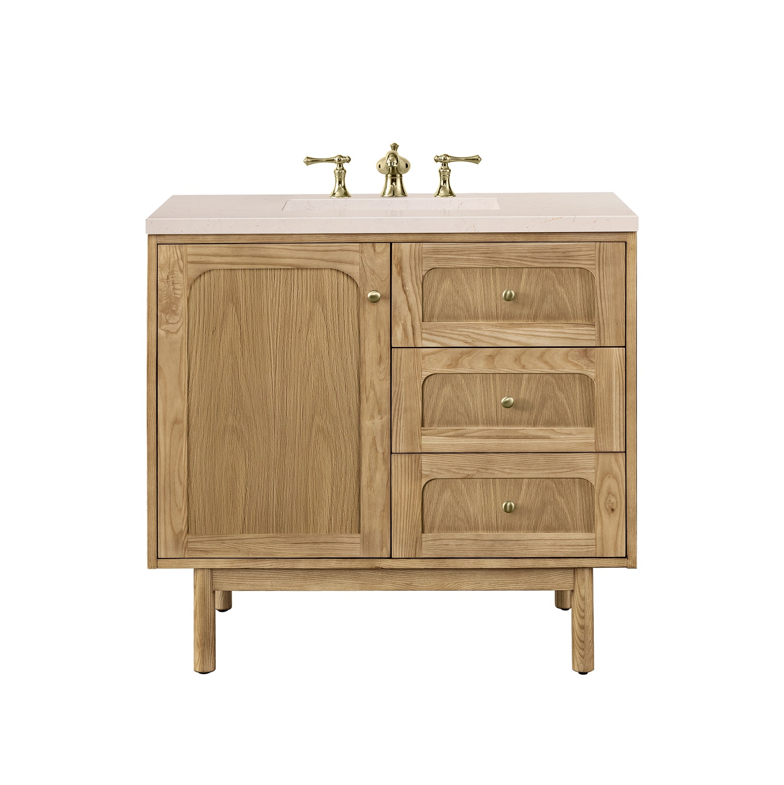 Laurent 36" Single Vanity, Light Natural Oak w/ 3 CM Eternal Jasmine Pearl Top
