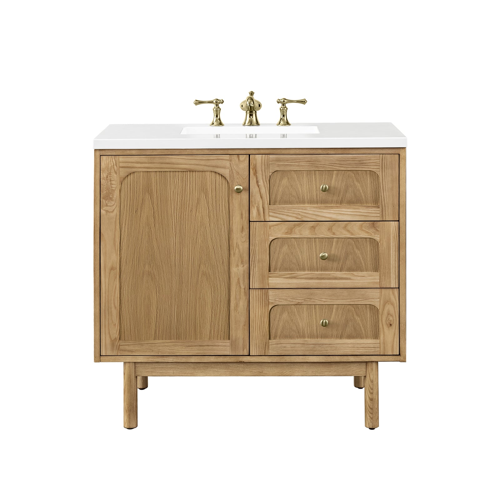 Laurent 36" Single Vanity, Light Natural Oak w/ Single Hole 3 CM White Zeus Top & Backsplash