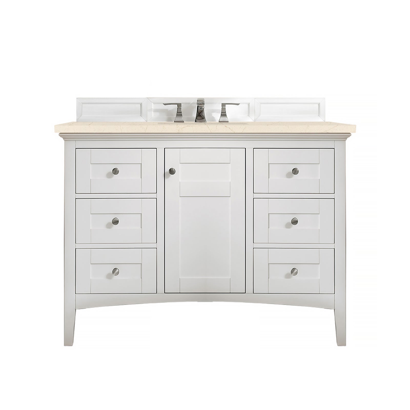 Palisades 48" Single Vanity, Bright White w/ 3 CM Eternal Jasmine Pearl Silestone Top