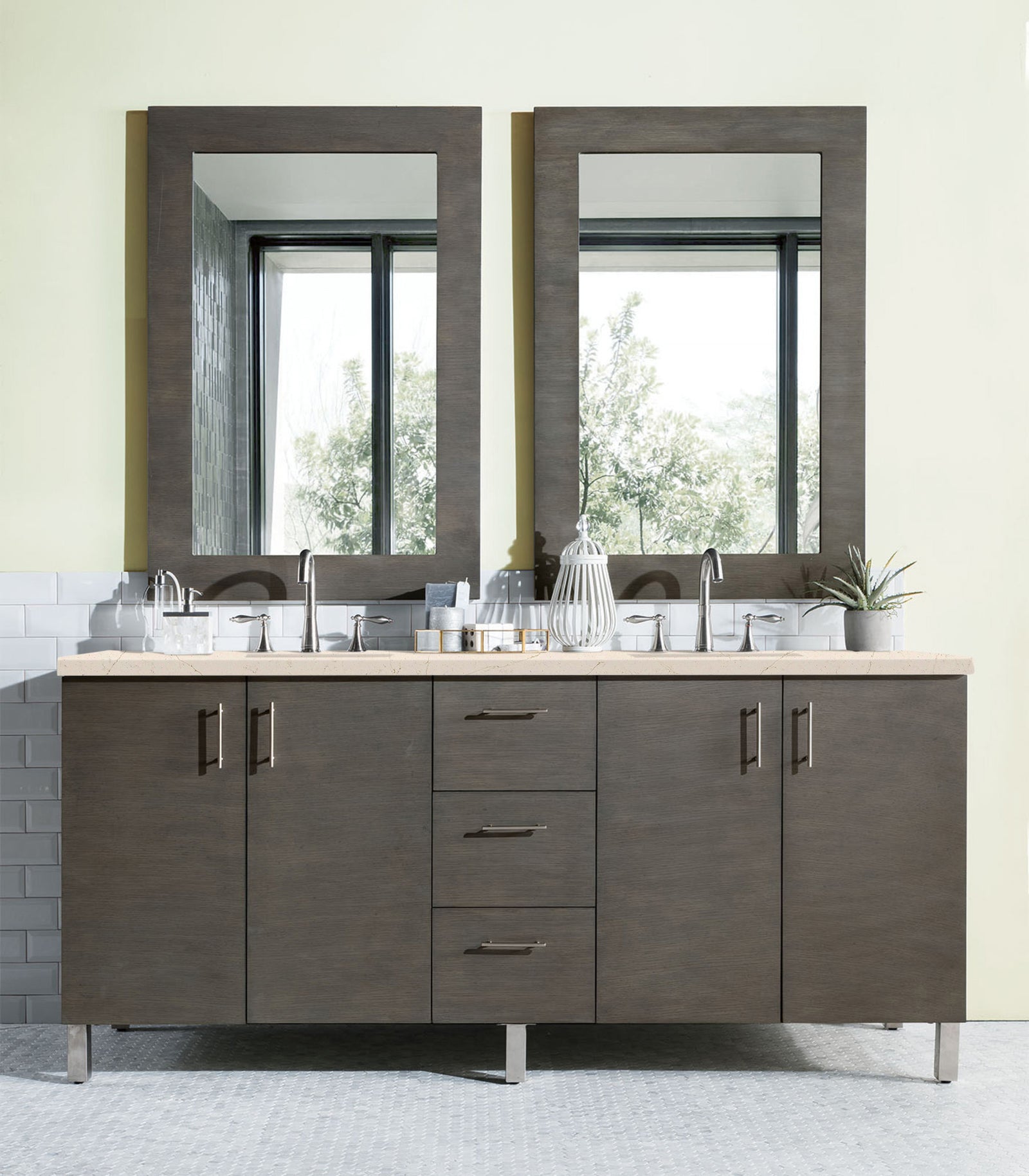 Metropolitan 72" Double Vanity, Silver Oak w/ 3 CM Eternal Marfil Silestone Top