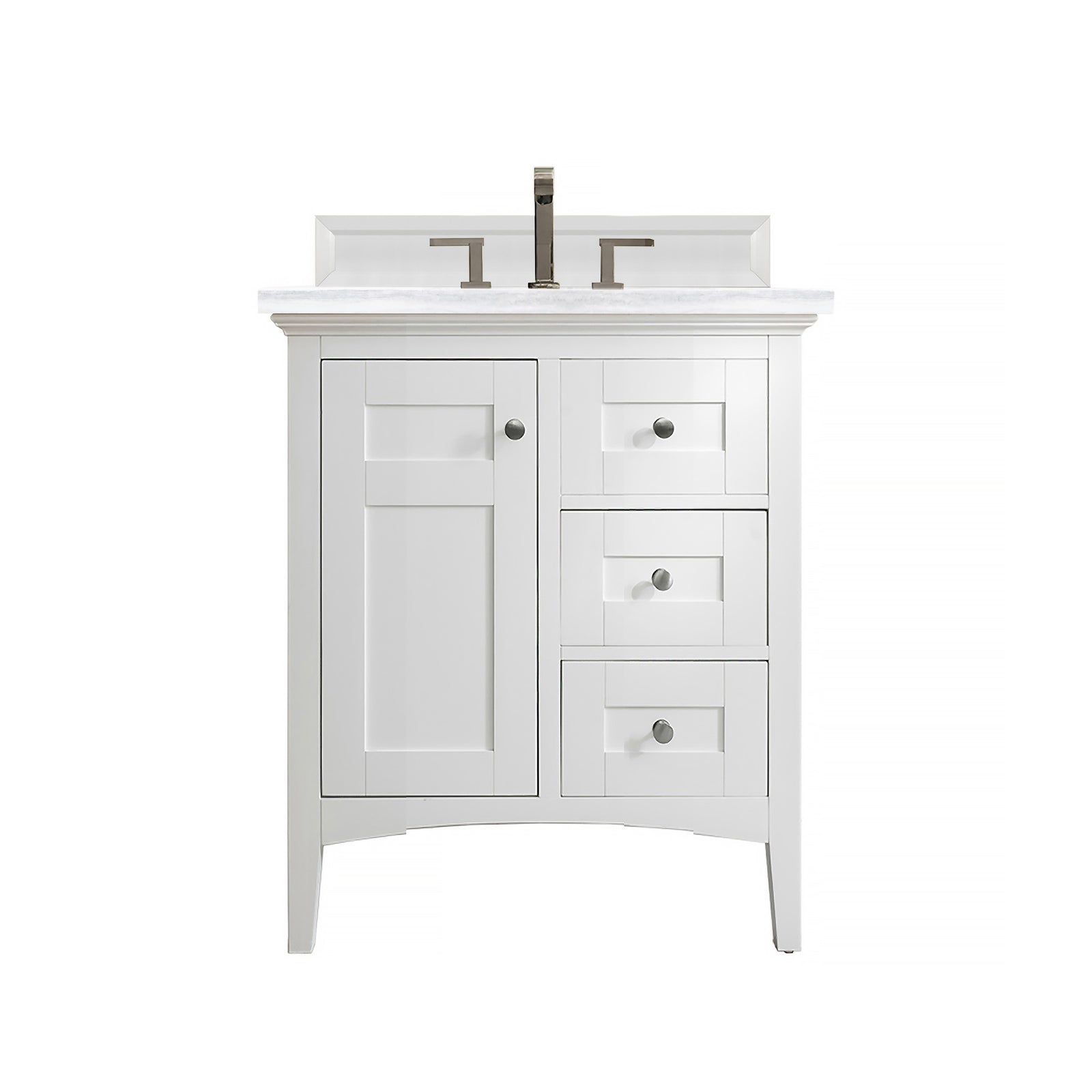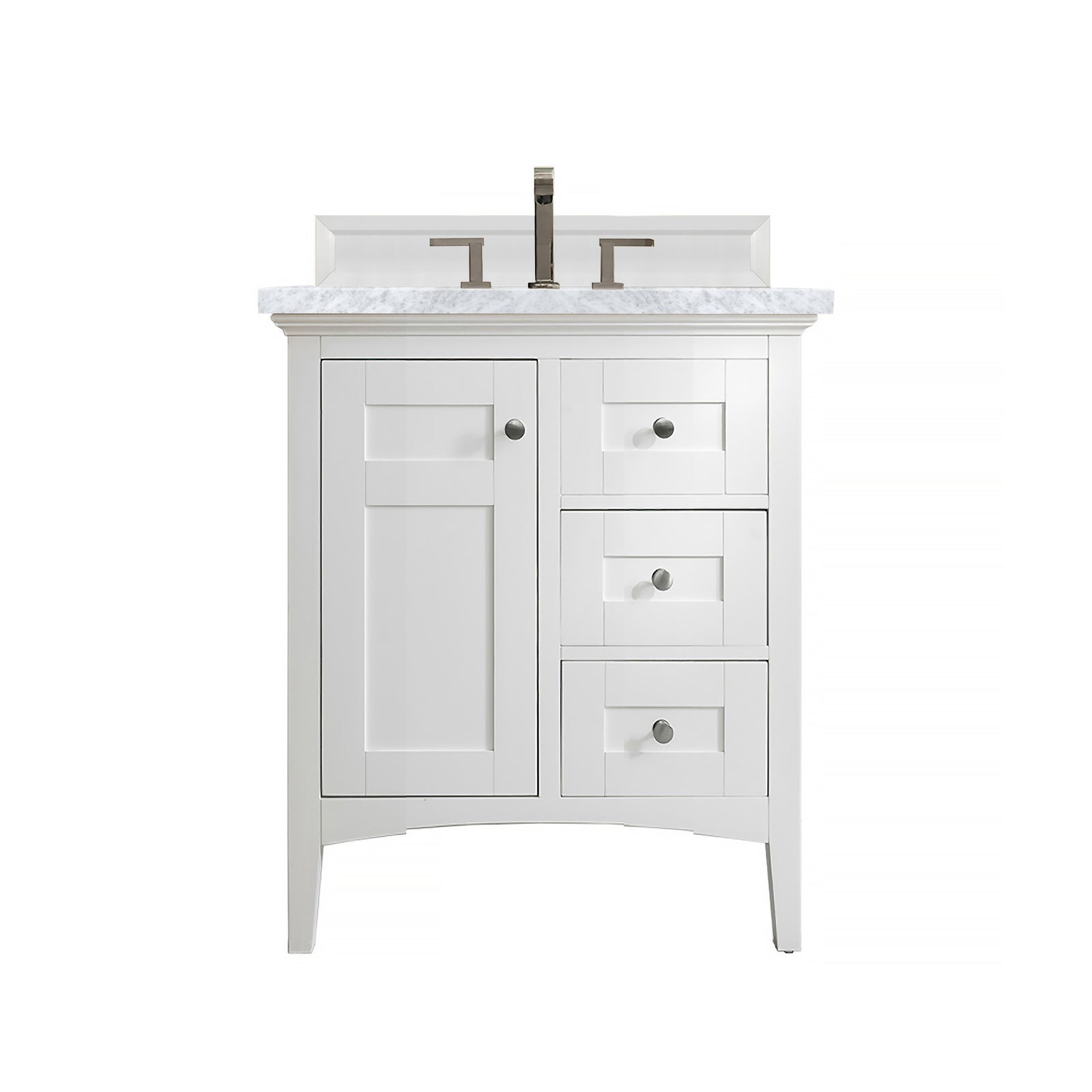 Palisades 30" Single Vanity, Bright White w/ 3 CM Carrara Marble Top