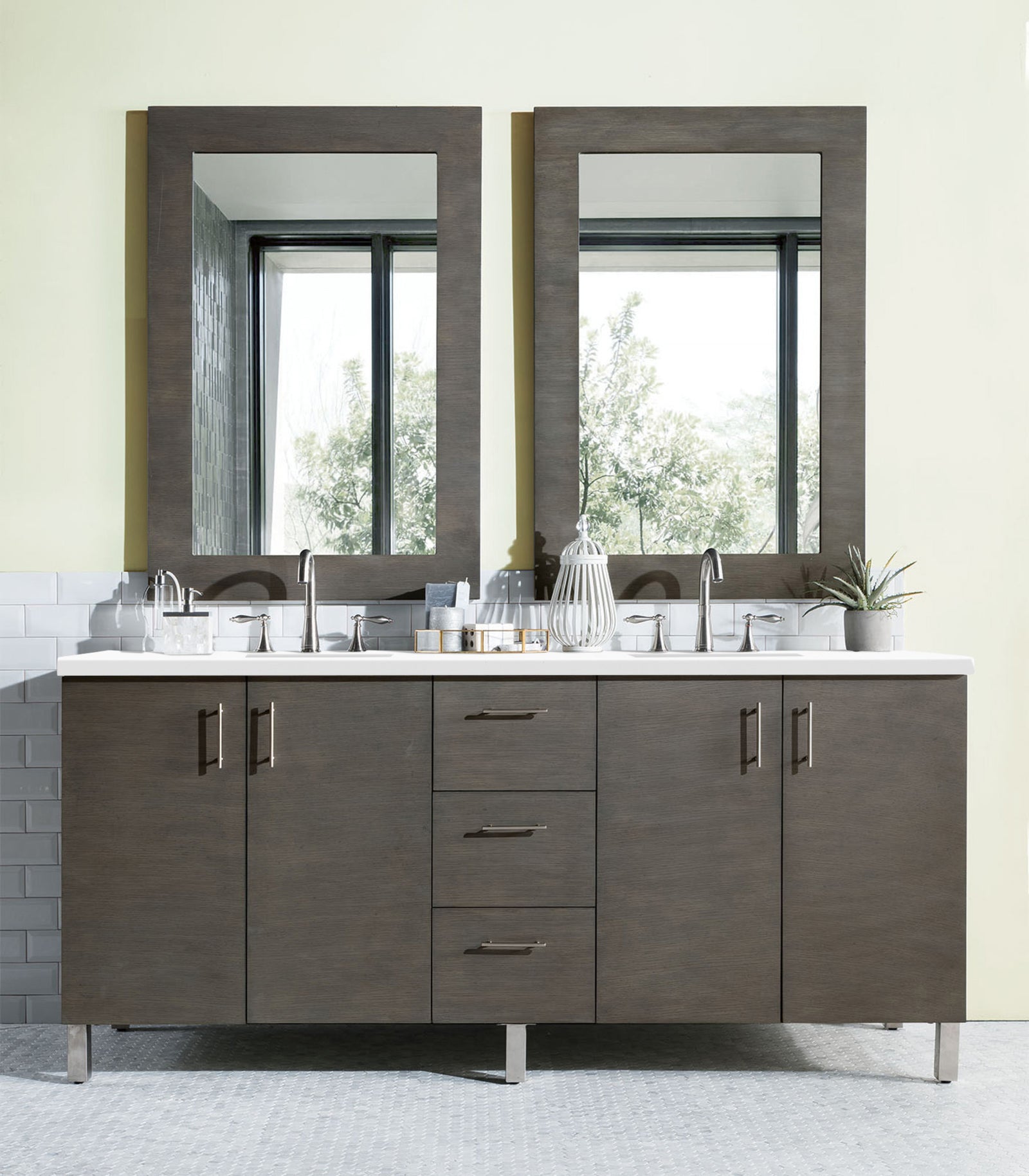 Metropolitan 72" Double Vanity, Silver Oak w/ 3 CM Arctic Fall Solid Surface Top