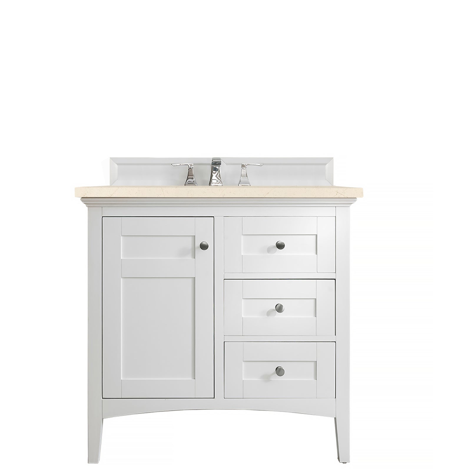 Palisades 36" Single Vanity, Bright White w/ 3 CM Eternal Jasmine Pearl Silestone Top
