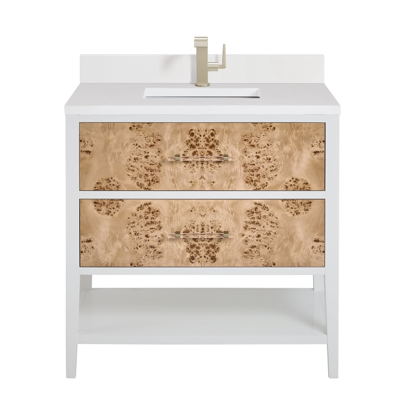 Olena 36" Single Vanity, Light Mappa Burl and Polished White w/ 3 CM White Zeus Silestone Top