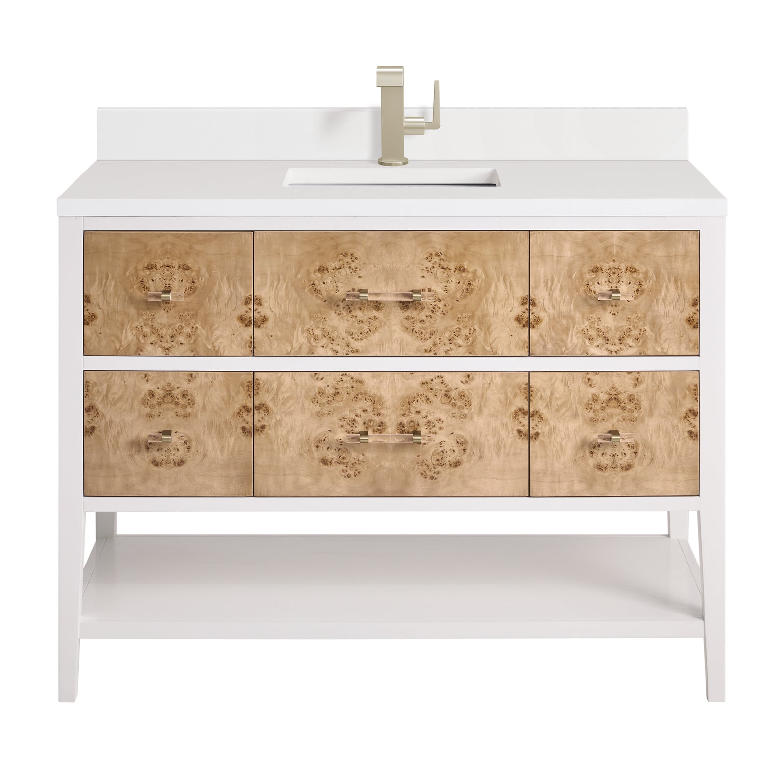 Olena 48" Single Vanity, Light Mappa Burl and Polished White w/ 3 CM White Zeus Silestone Top