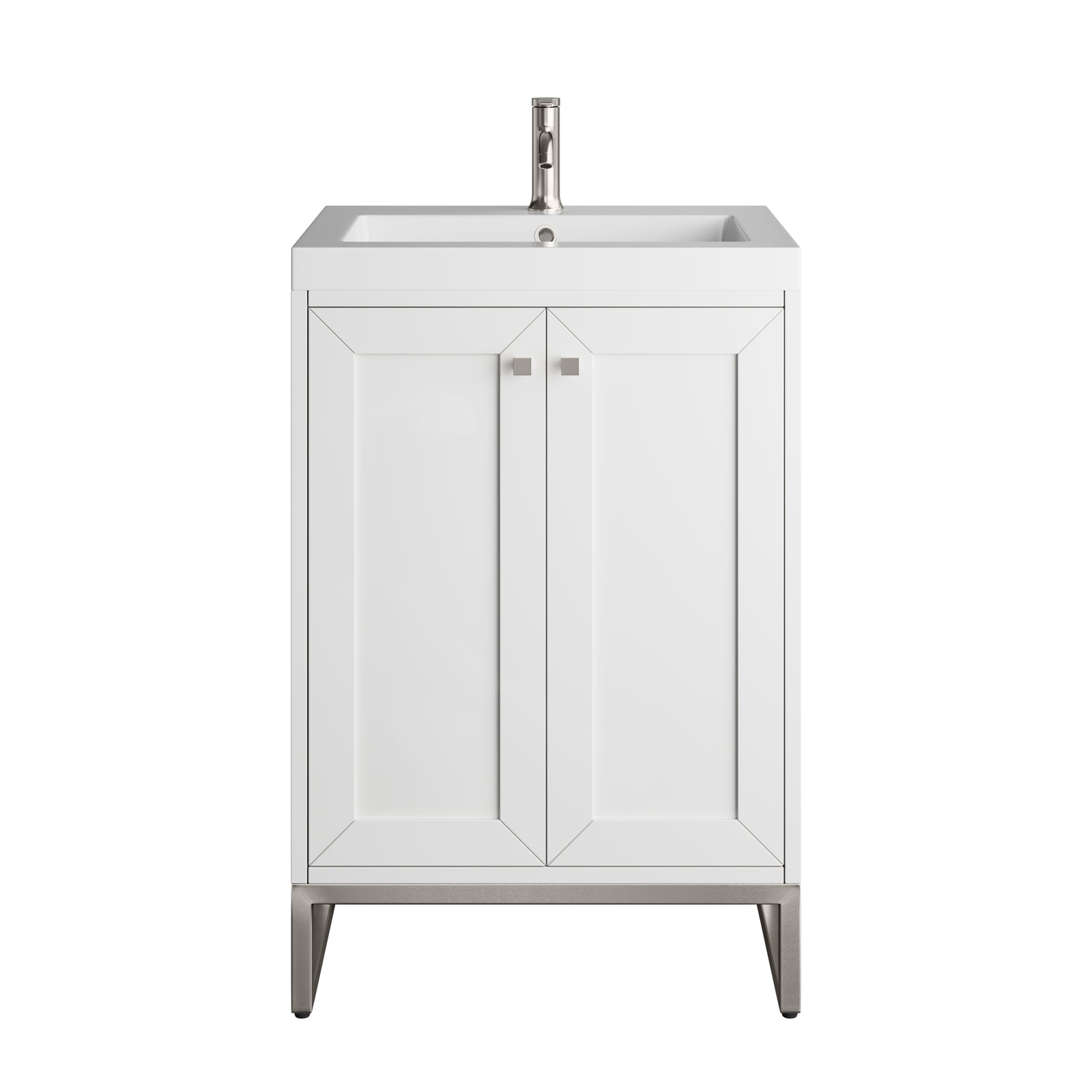 Chianti 24" Single Vanity, Glossy White, Brushed Nickel, w/ White Glossy Composite Stone Top