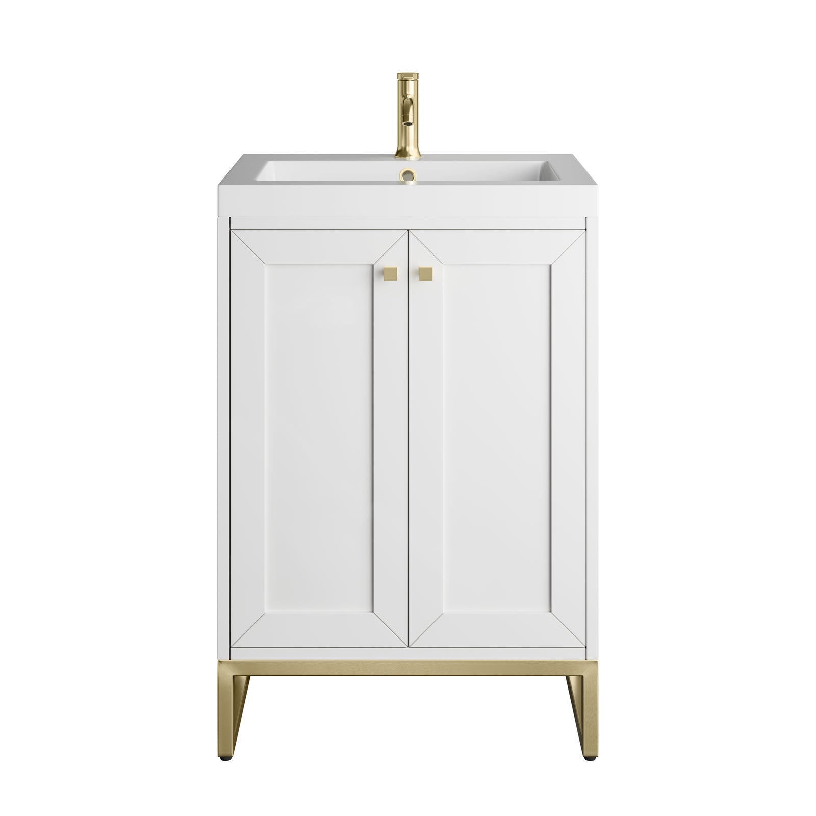 Chianti 24" Single Vanity, Glossy White, Champagne Brass, w/ White Glossy Composite Stone Top