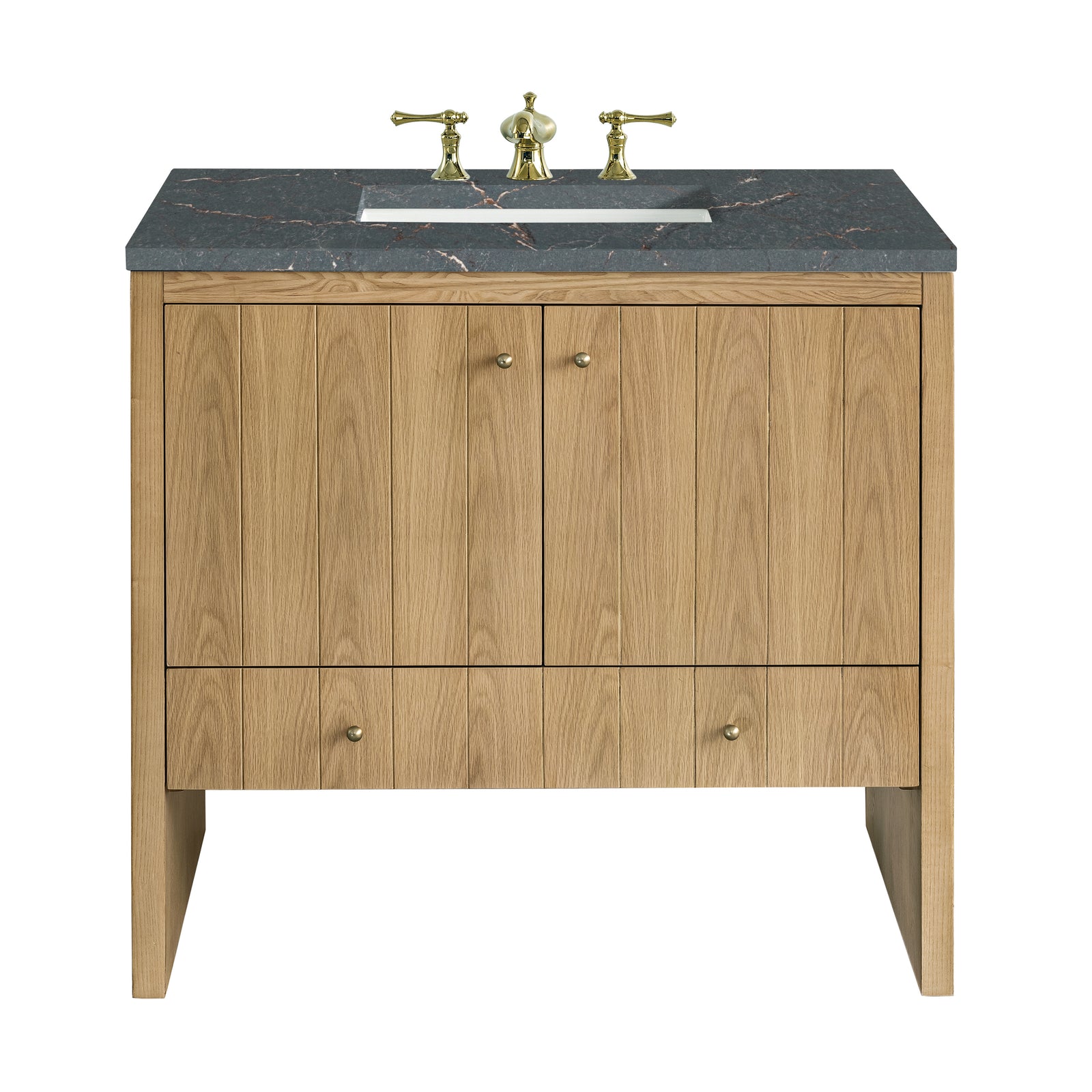 Hudson 36" Single Vanity, Light Natural Oak w/ 3 CM Charcoal Soapstone Top