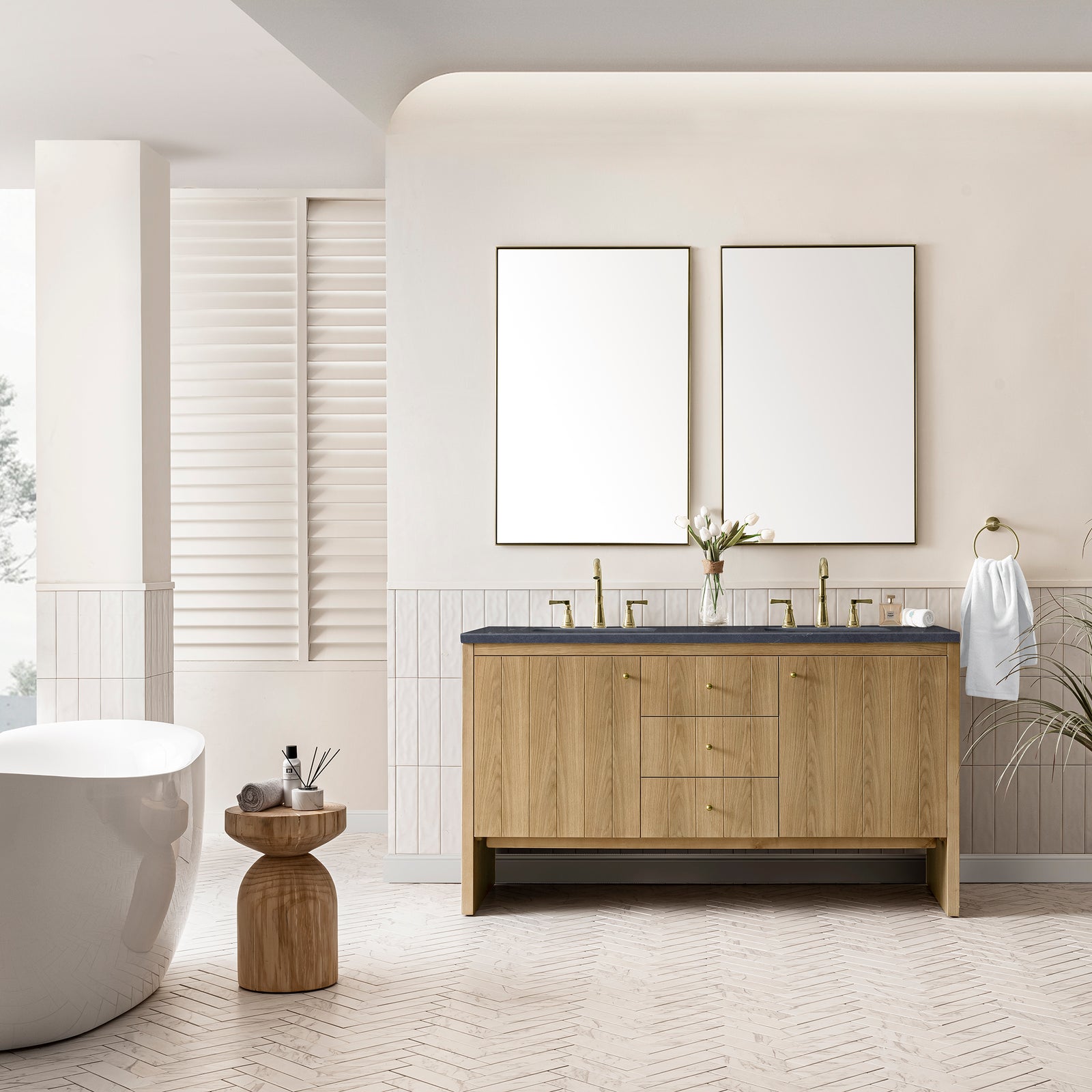 Hudson 60" Double Vanity, Light Natural Oak w/ 3 CM Parisien Bleu Top