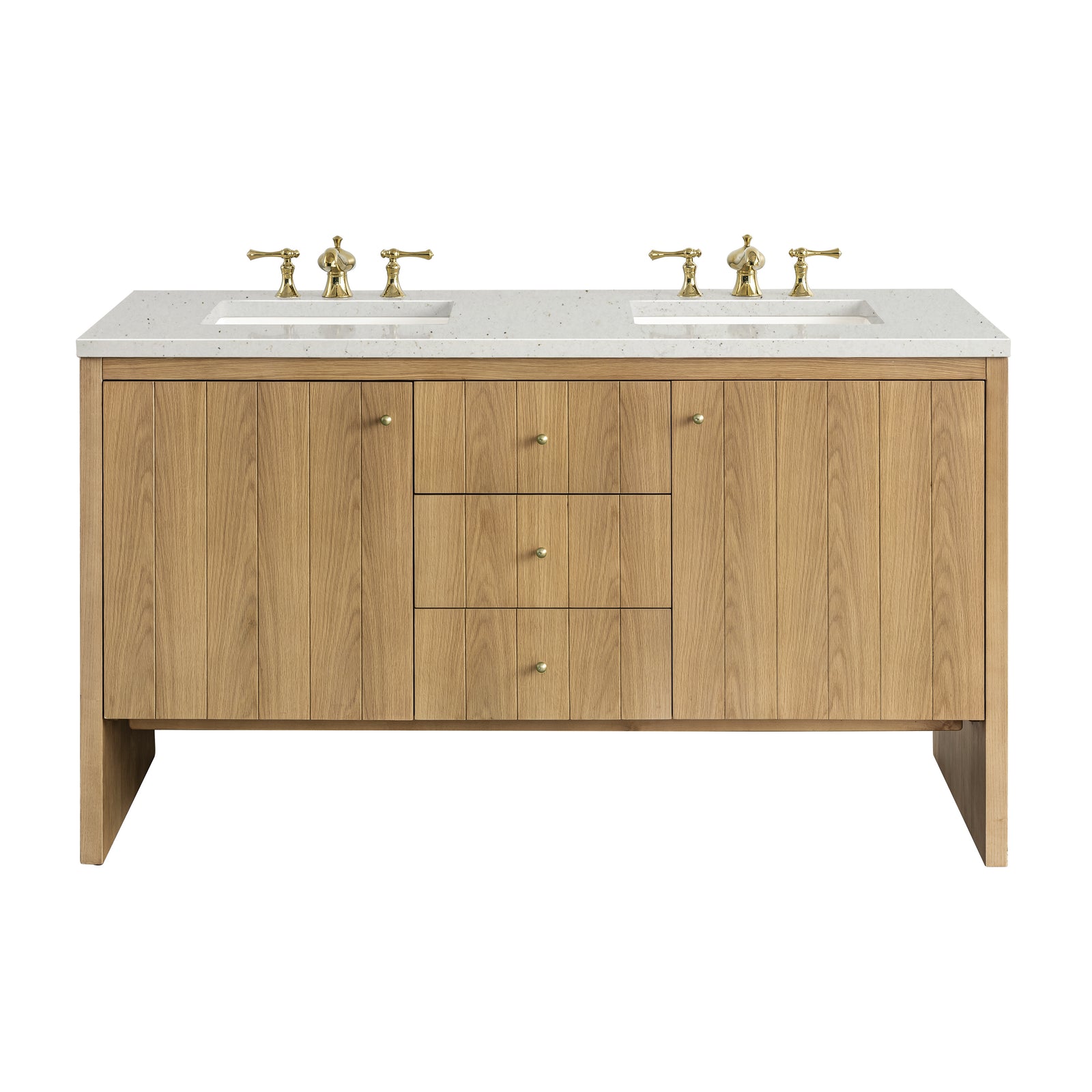 Hudson 60" Double Vanity, Light Natural Oak w/ 3 CM Eternal Jasmine Pearl Top