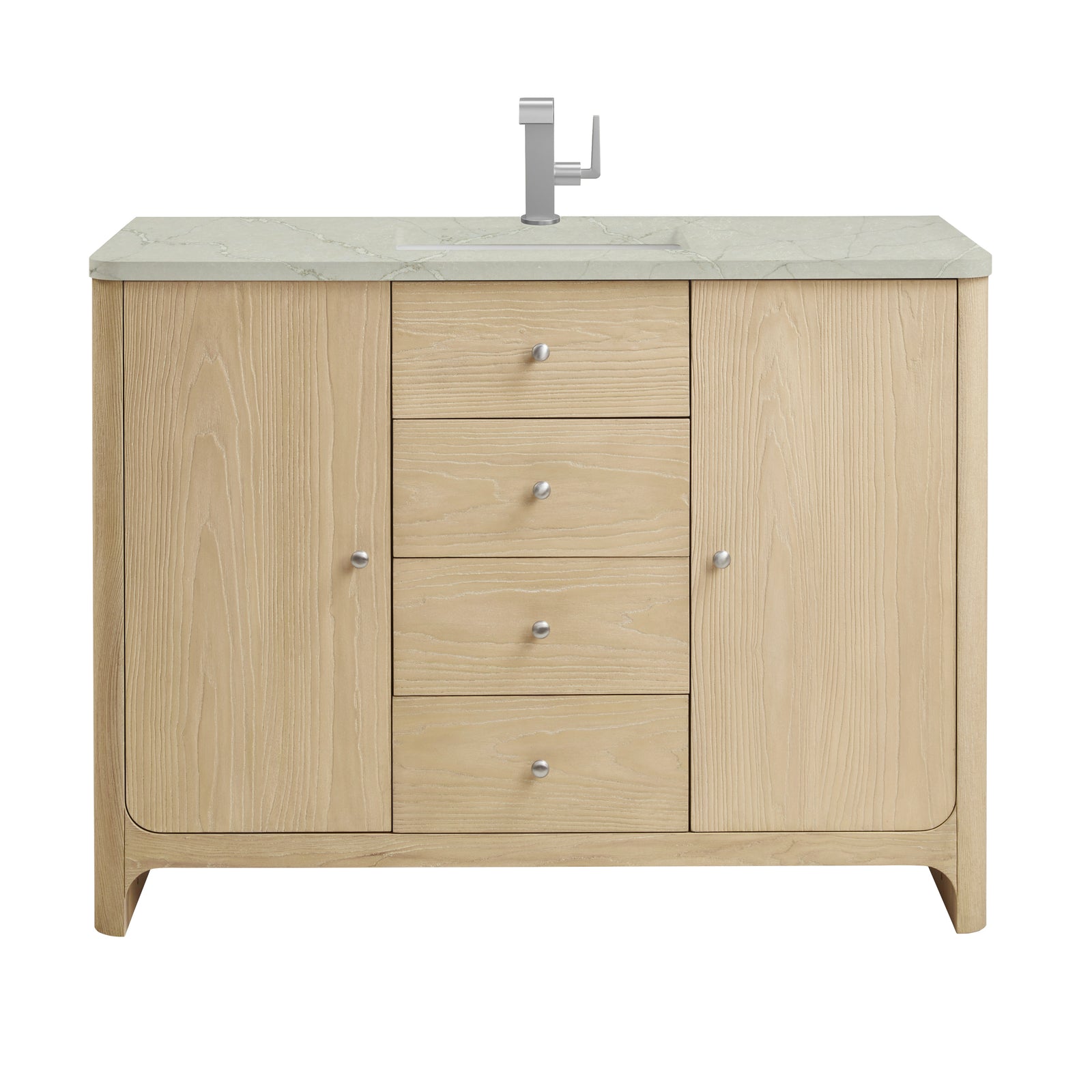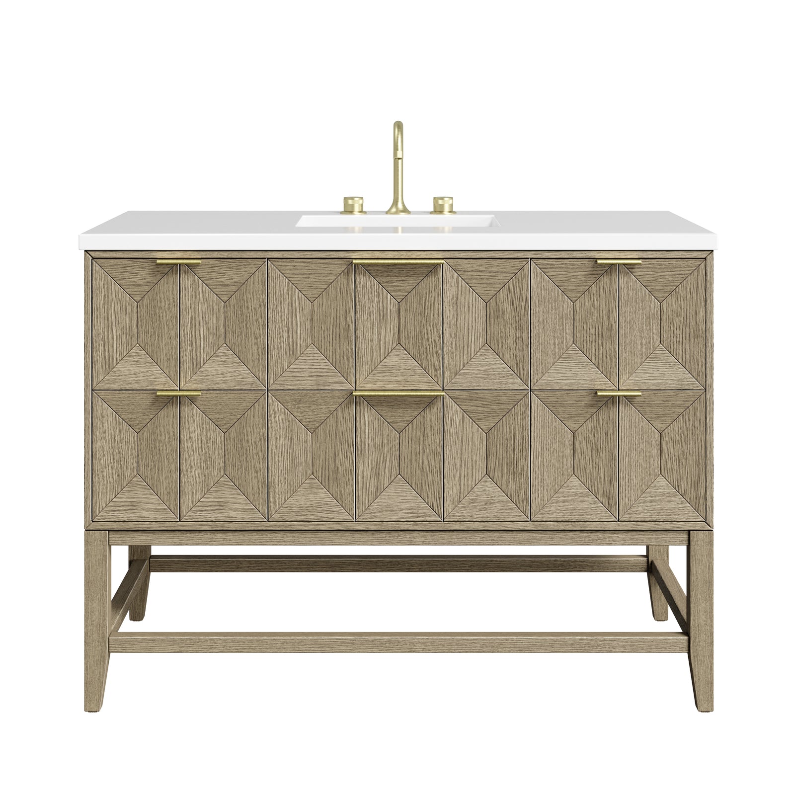 Emmeline 48" Single Vanity, Pebble Oak w/ 3 CM White Zeus Silestone Top