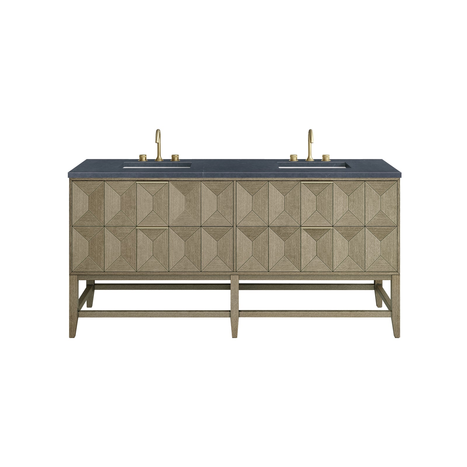 Emmeline 72" Double Vanity, Pebble Oak w/ 3 CM Parisien Bleu Top