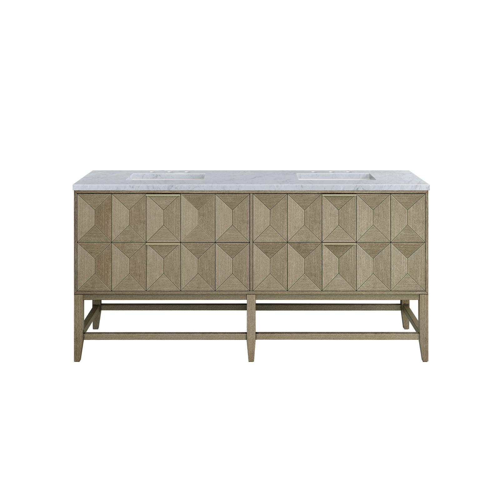 Emmeline 72" Double Vanity, Pebble Oak w/ 3 CM Carrara Marble Top