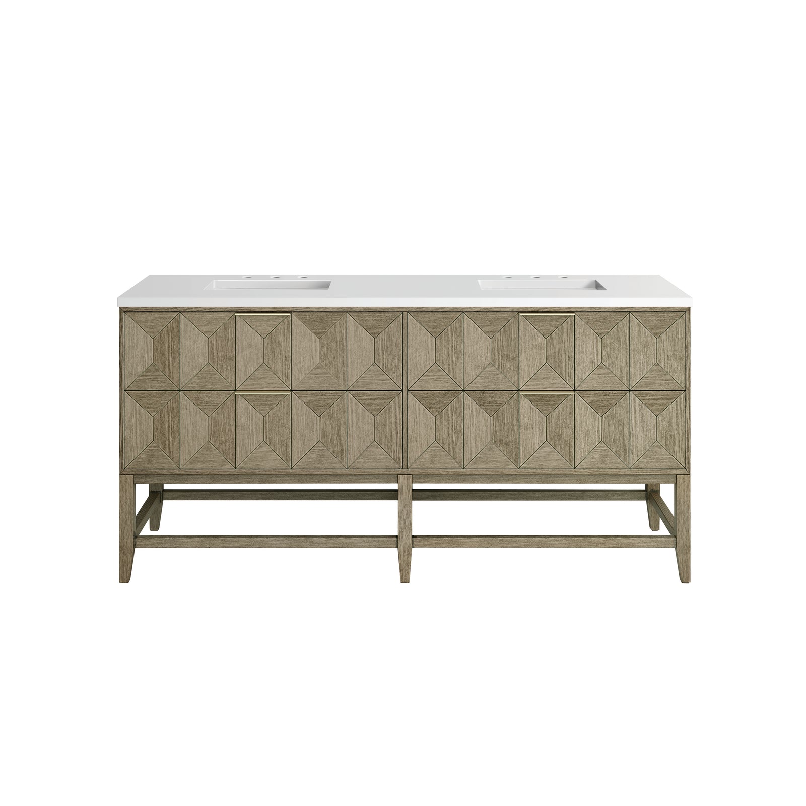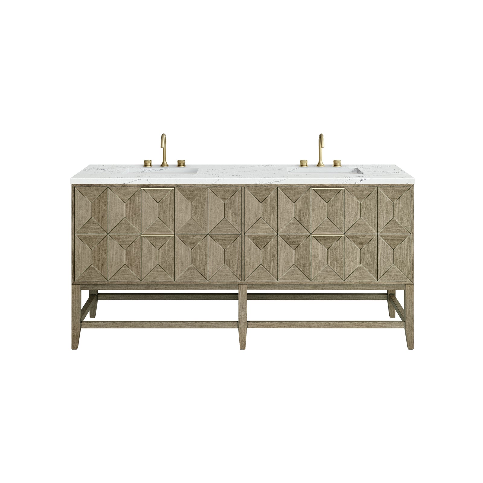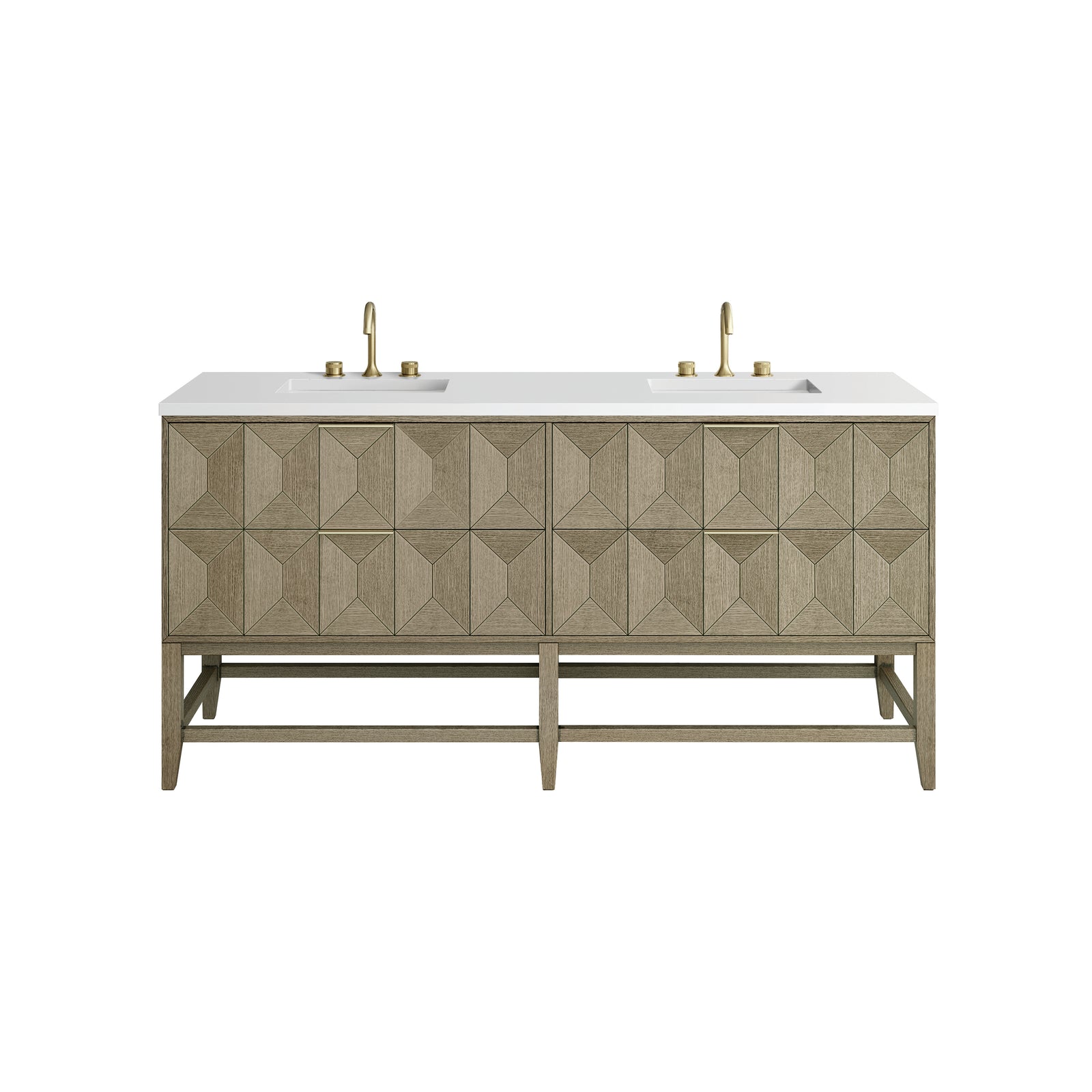 Emmeline 72" Double Vanity, Pebble Oak w/ 3 CM Arctic Fall Top