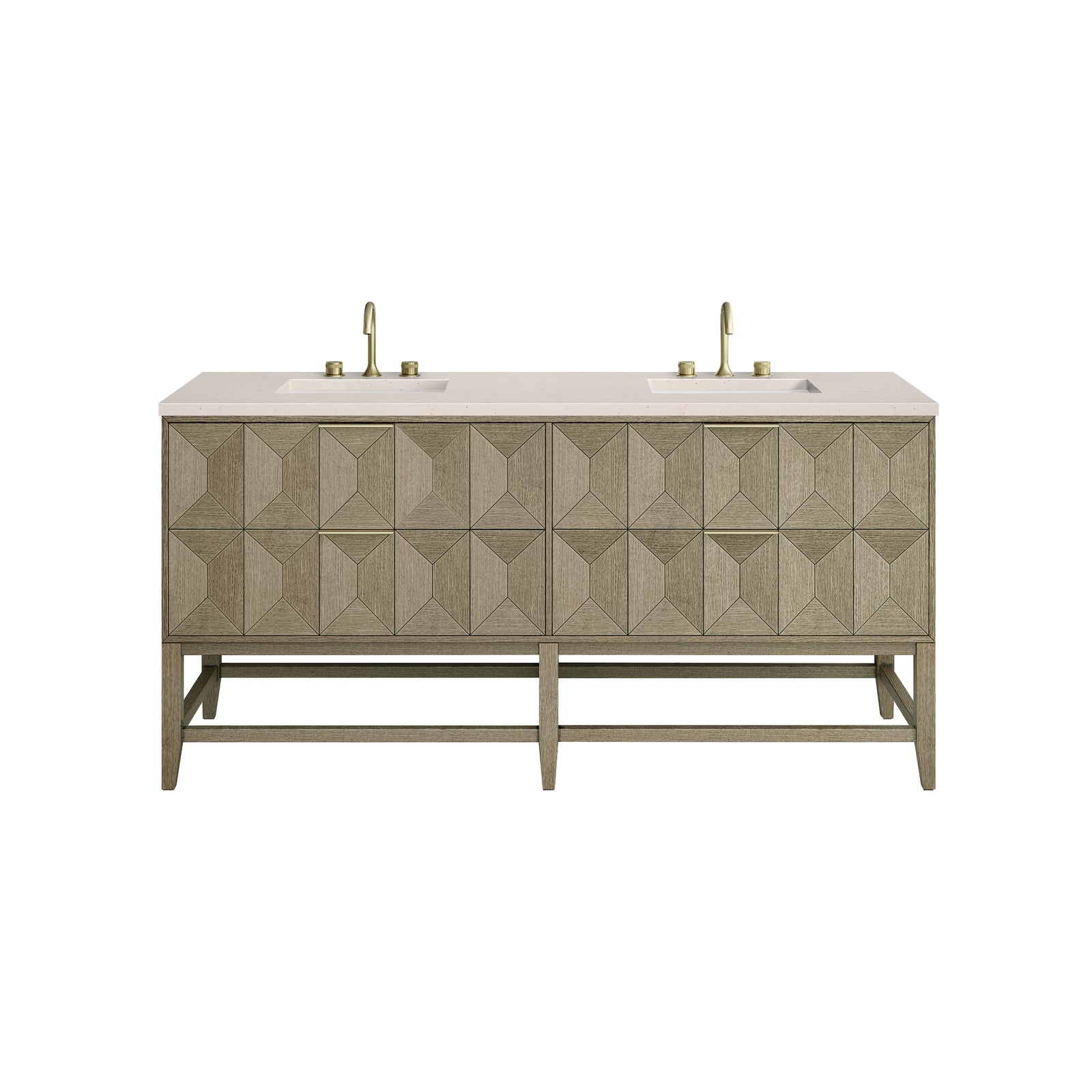 Emmeline 72" Double Vanity, Pebble Oak w/ 3 CM Eternal Marfil Top