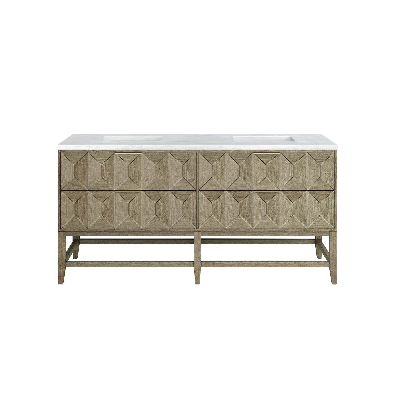 Emmeline 72" Double Vanity, Pebble Oak w/ 3 CM White Zeus Top