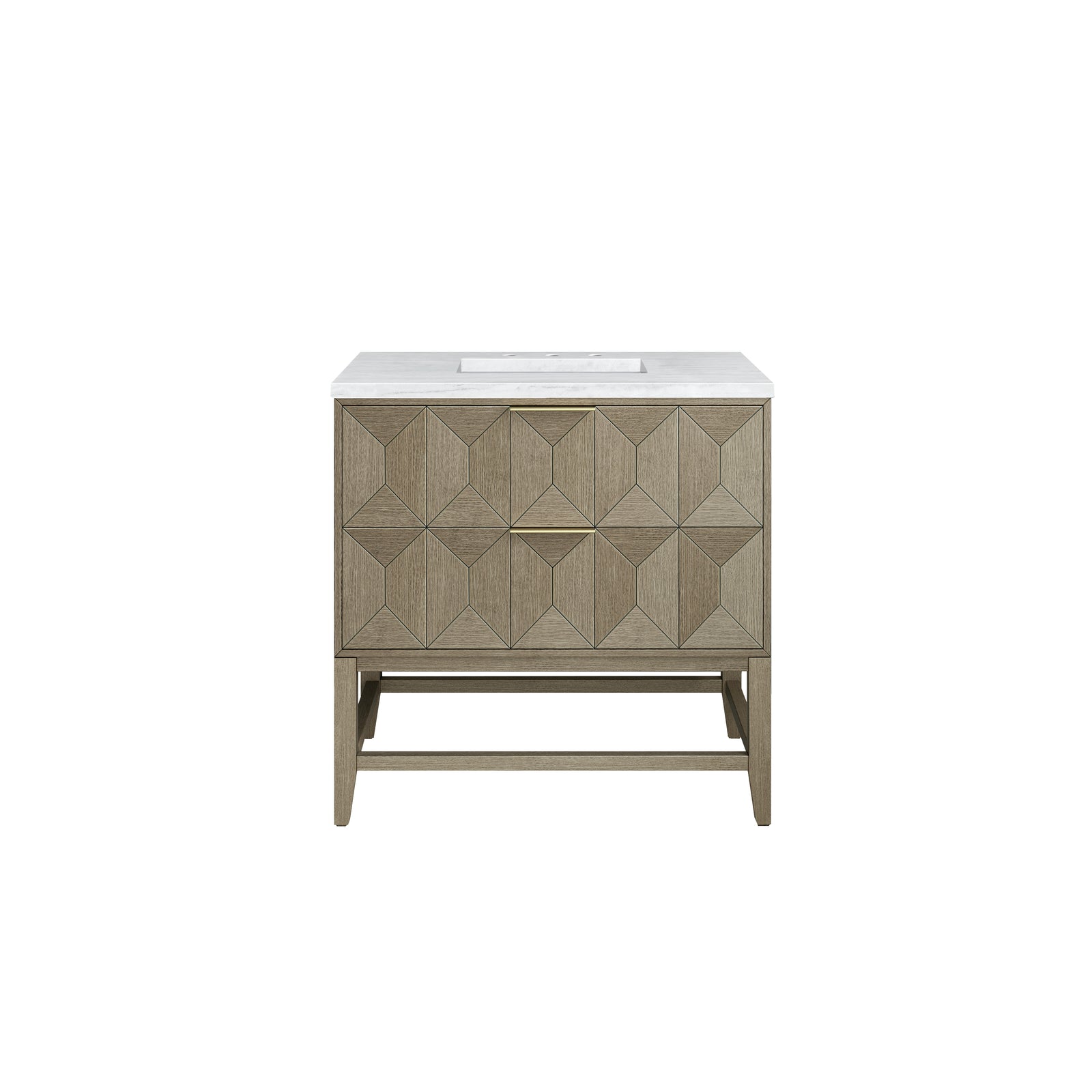 Emmeline 36" Single Vanity, Pebble Oak w/ 3 CM Carrara Marble Top